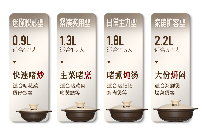 颜色 【加厚】0.9L【迷你快炒 1-2人适用】【5年烧裂包赔】,【加厚】1.3L【紧凑实用 1-2人适用】【5年烧裂包赔】,【加厚】1.8L【日常主力 2-3人适用】【5年烧裂包赔】,【加厚】2.2L【家庭扩容 3-5人适用】【5年烧裂包赔】