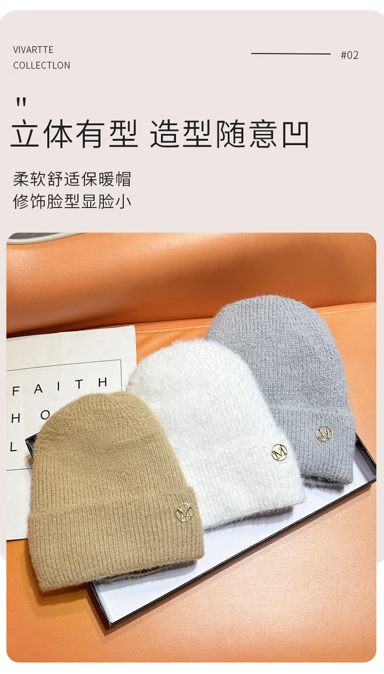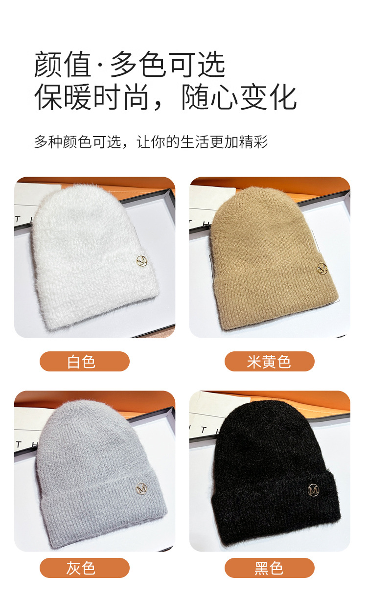 m休闲毛线帽加厚成人保暖护耳防寒秋冬新款欧美风兔毛帽子针织