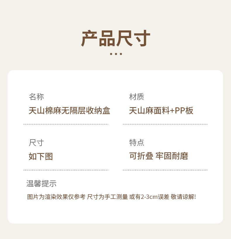 颜色 天山麻无隔层-中号,天山麻无隔层-大号,天山棉麻分格收纳箱-单盖,天山棉麻分格收纳箱-双盖