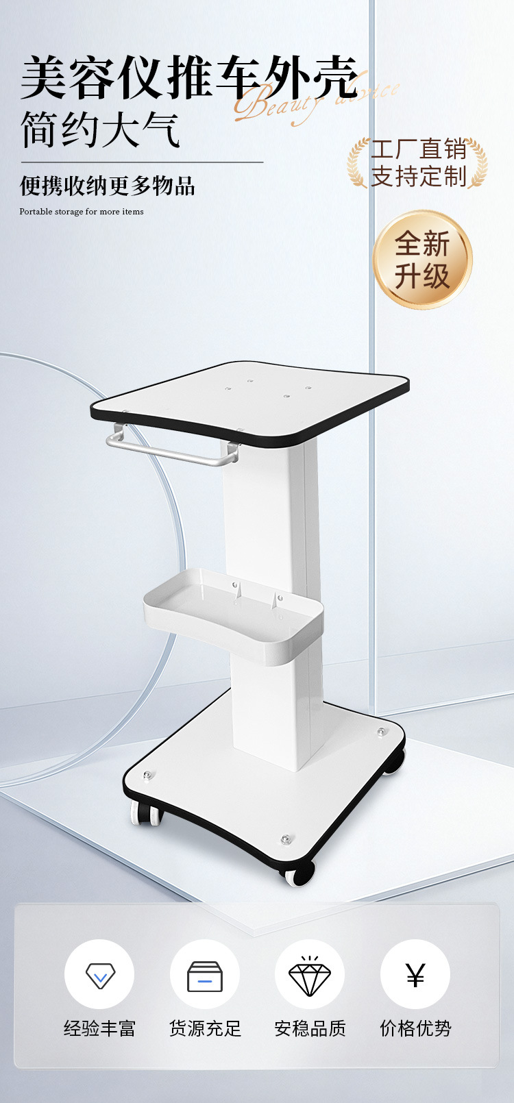 跨境专供小推车小气泡架子底座高档移动置物架美容院专用仪器支架