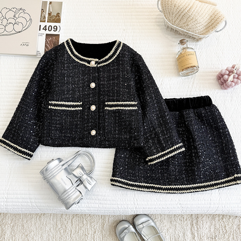 女の子のおしゃれなスーツスカート 2025 春と秋の新しい女の子のおしゃれな秋服子供セータープリーツスカート 2 点セット