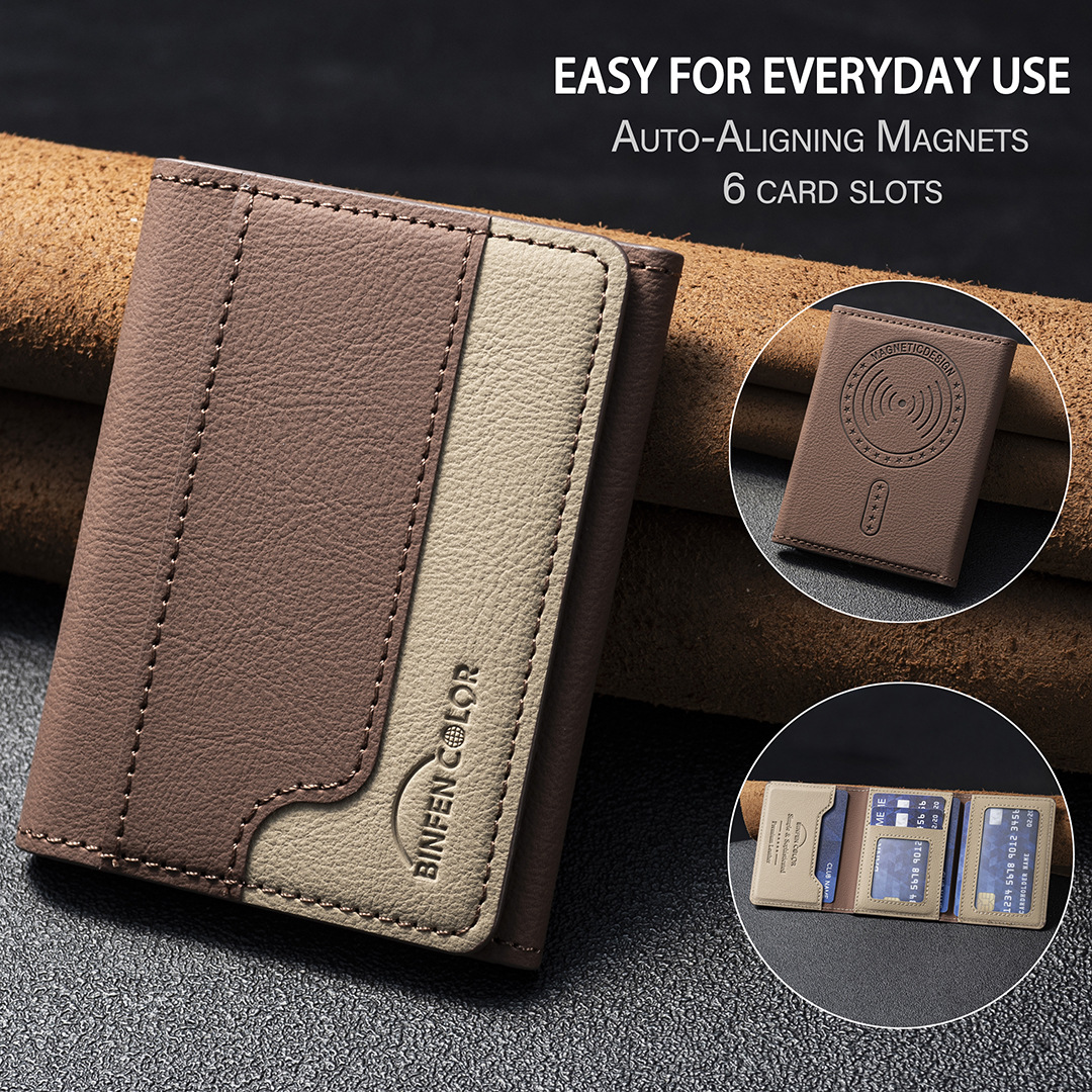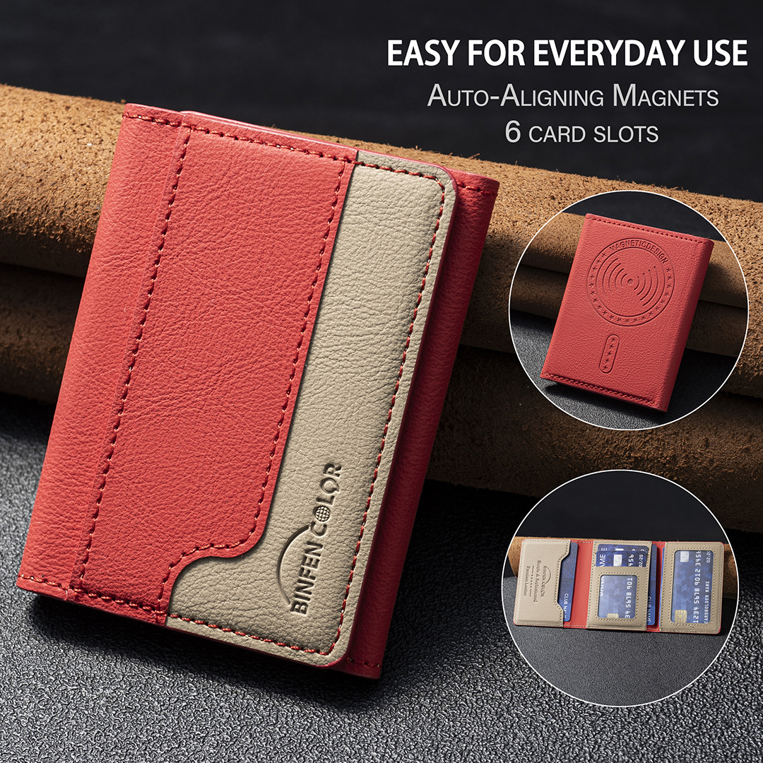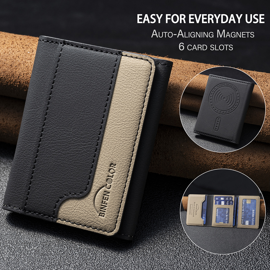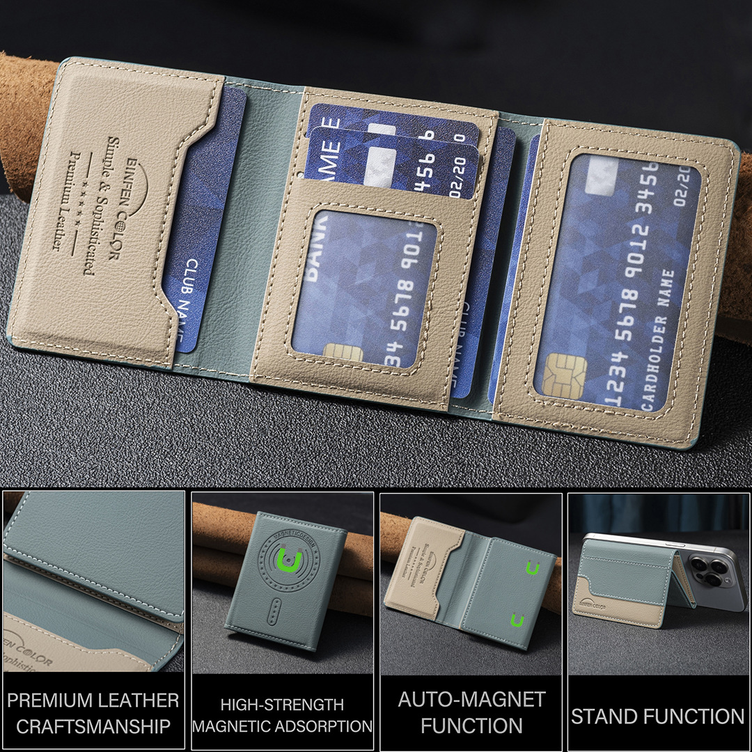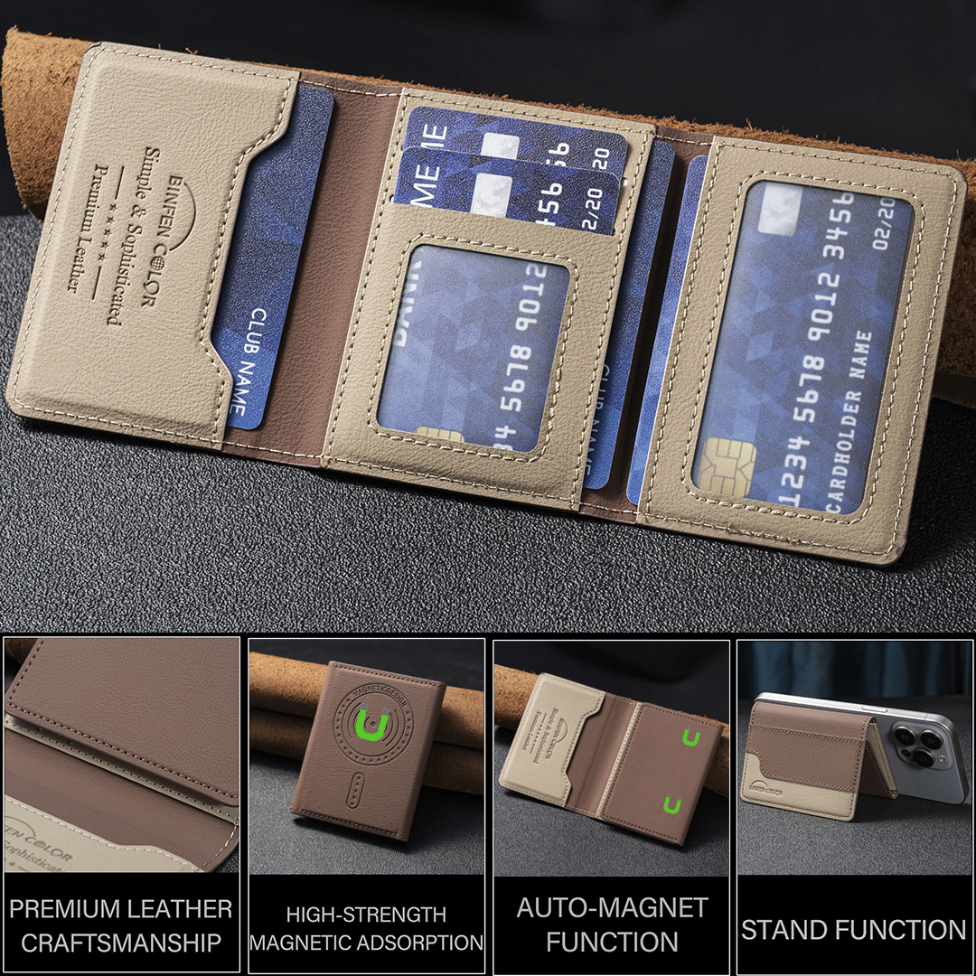 适用iphone16/17三折磁吸钱包插卡支架磁吸钱包背吸通用手机卡包