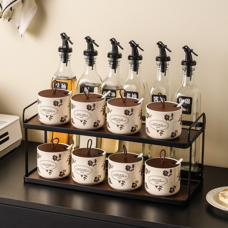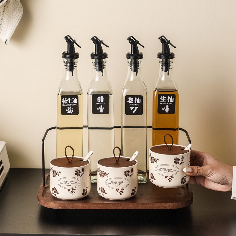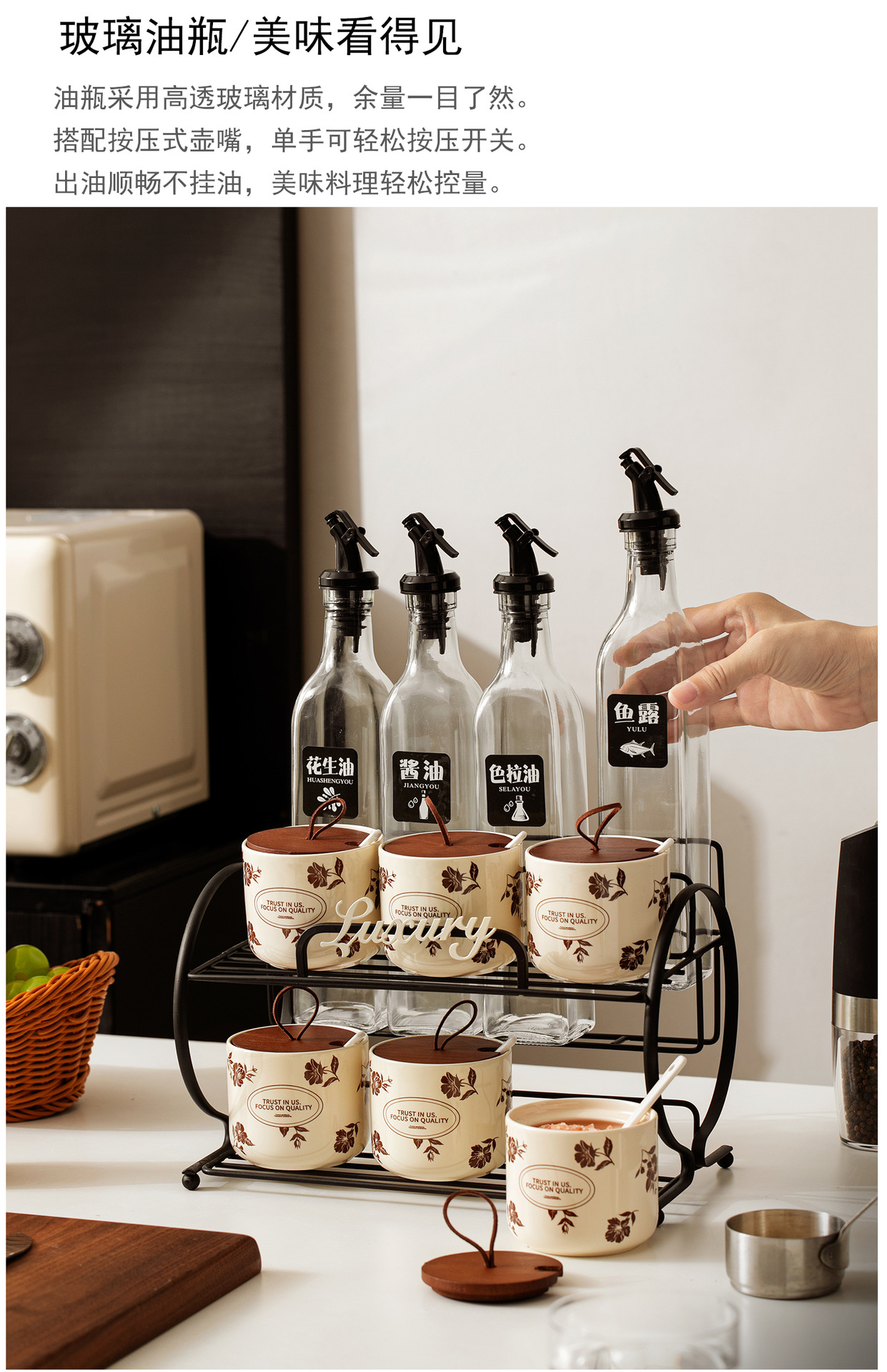 高颜值玻璃调味瓶家用厨房调味罐收纳架组合批发高级感调味架套装
