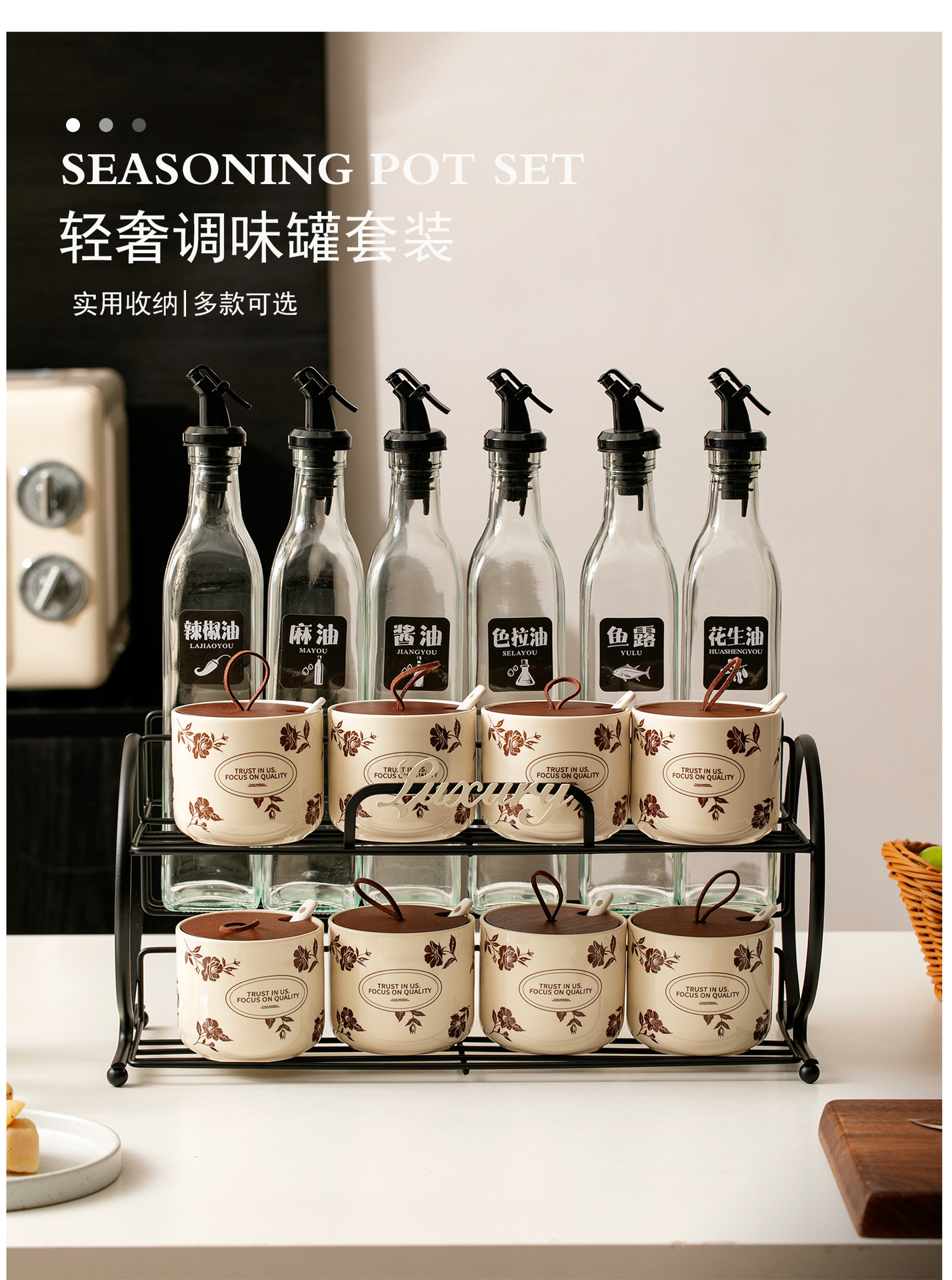 中古風キッチン調味料缶収納セット家庭用セラミック調味料缶塩砂糖缶調味料ガラス油瓶卸売り