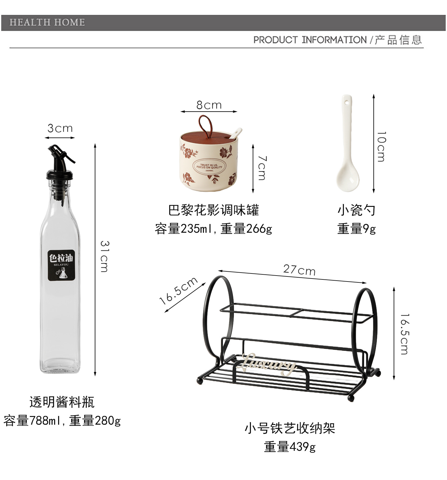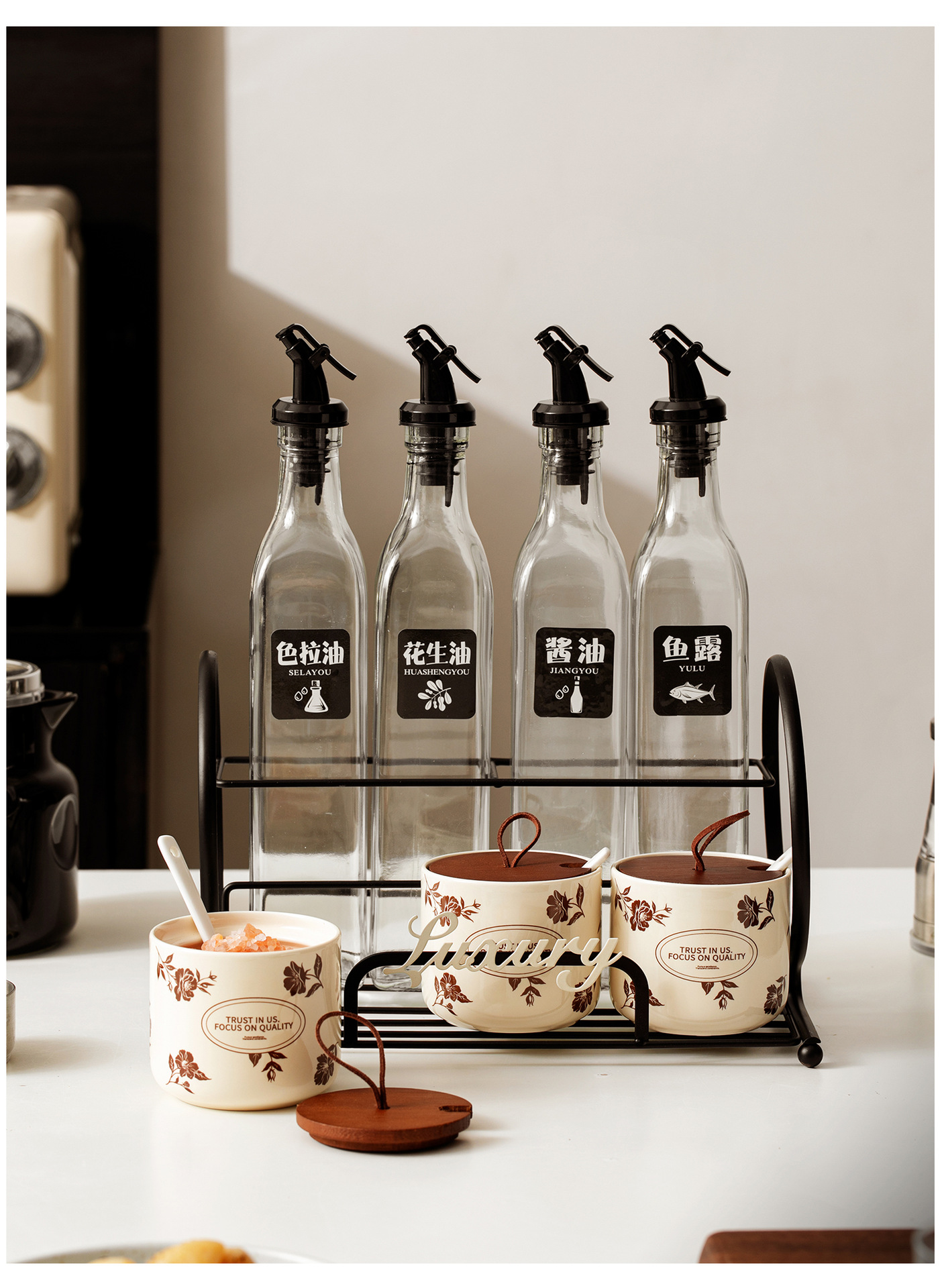 新商品の軽豪華調味料缶と油壺の組み合わせセット家庭用高颜値調味料瓶塩箱と醤油瓶の組み合わせ卸売り