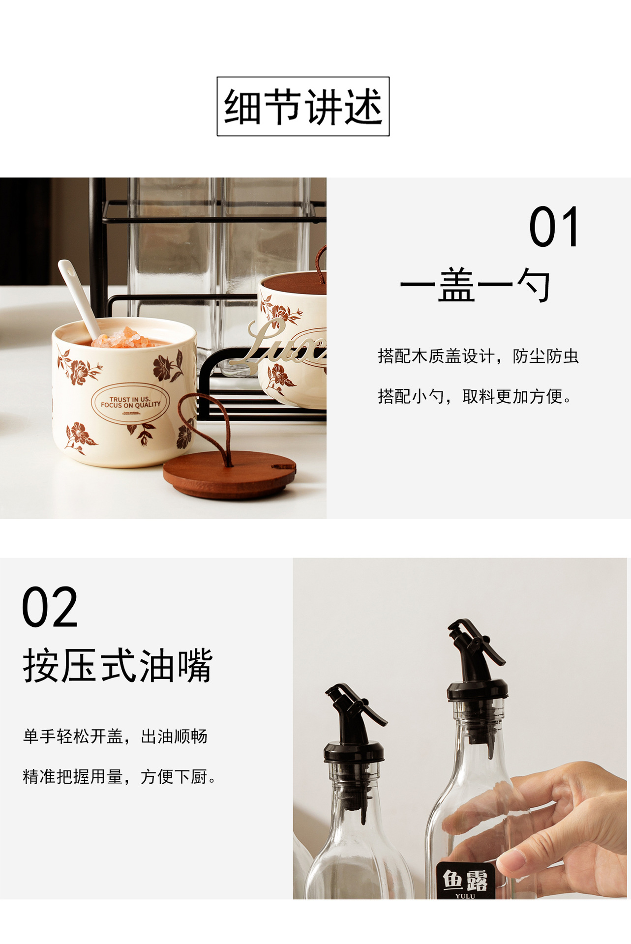 复古花卉调味罐套装厨房酱油味精调味瓶收纳组合多功能盐罐调料罐