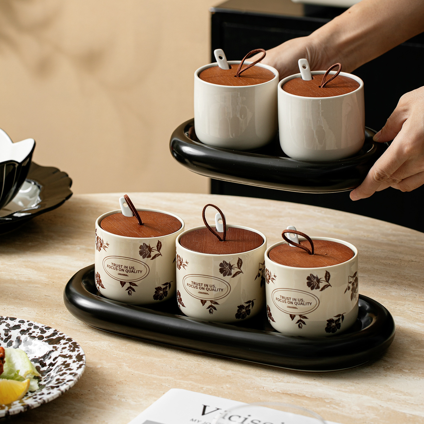多款式陶瓷调料盒调味罐组合套装家用厨房盐糖罐辣椒味精罐带盖勺