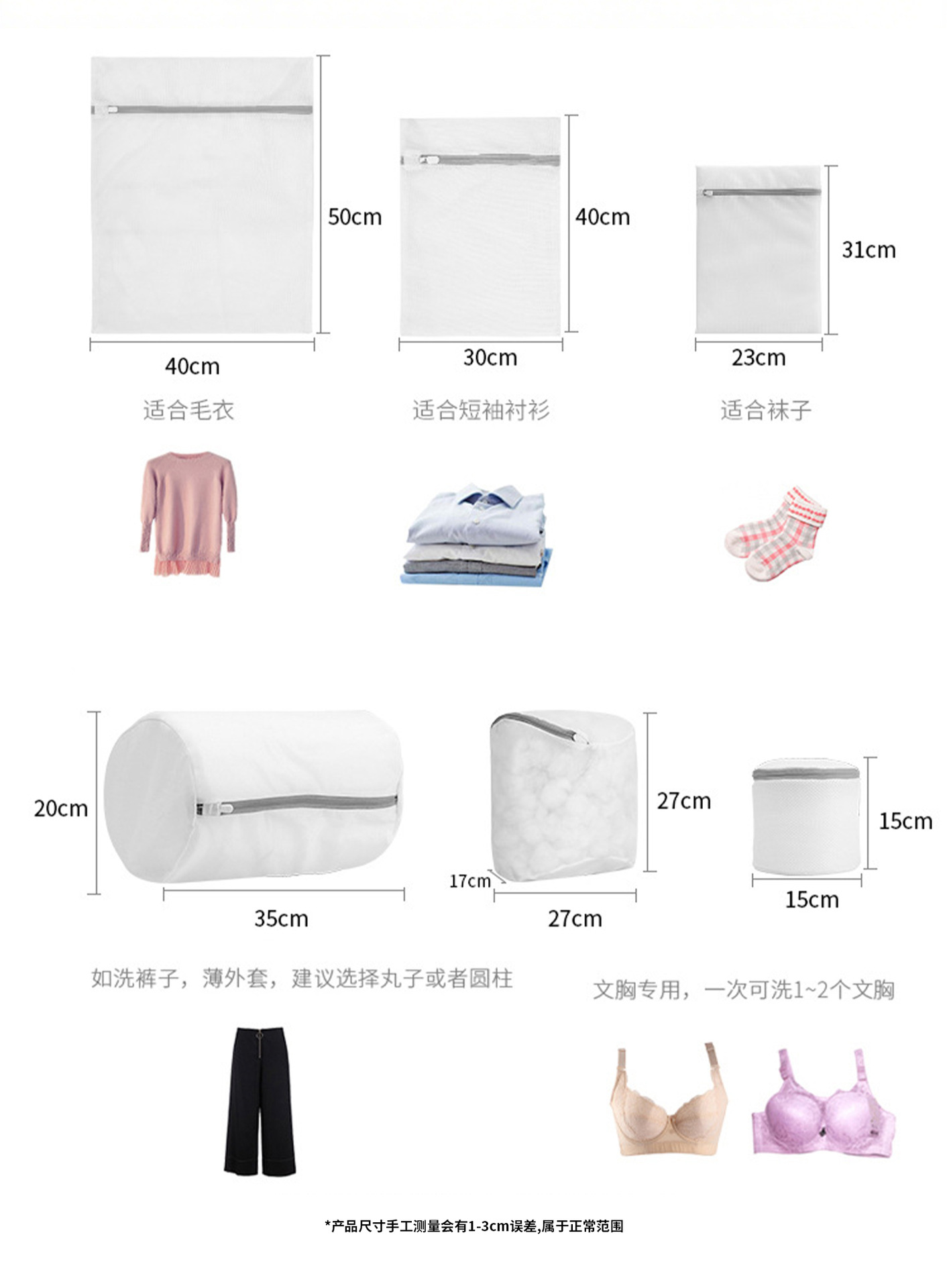 规格 25*30【袜子内衣裤】,30*40【T恤短袖】,40*50【薄外套毛衣裤】,50*60【厚外套】,60*60【床单羽绒服】,圆柱形22*33【裤子薄外套】,浅灰三明治文胸袋圆柱【1-2个文胸】,浅灰三明治文胸袋三角