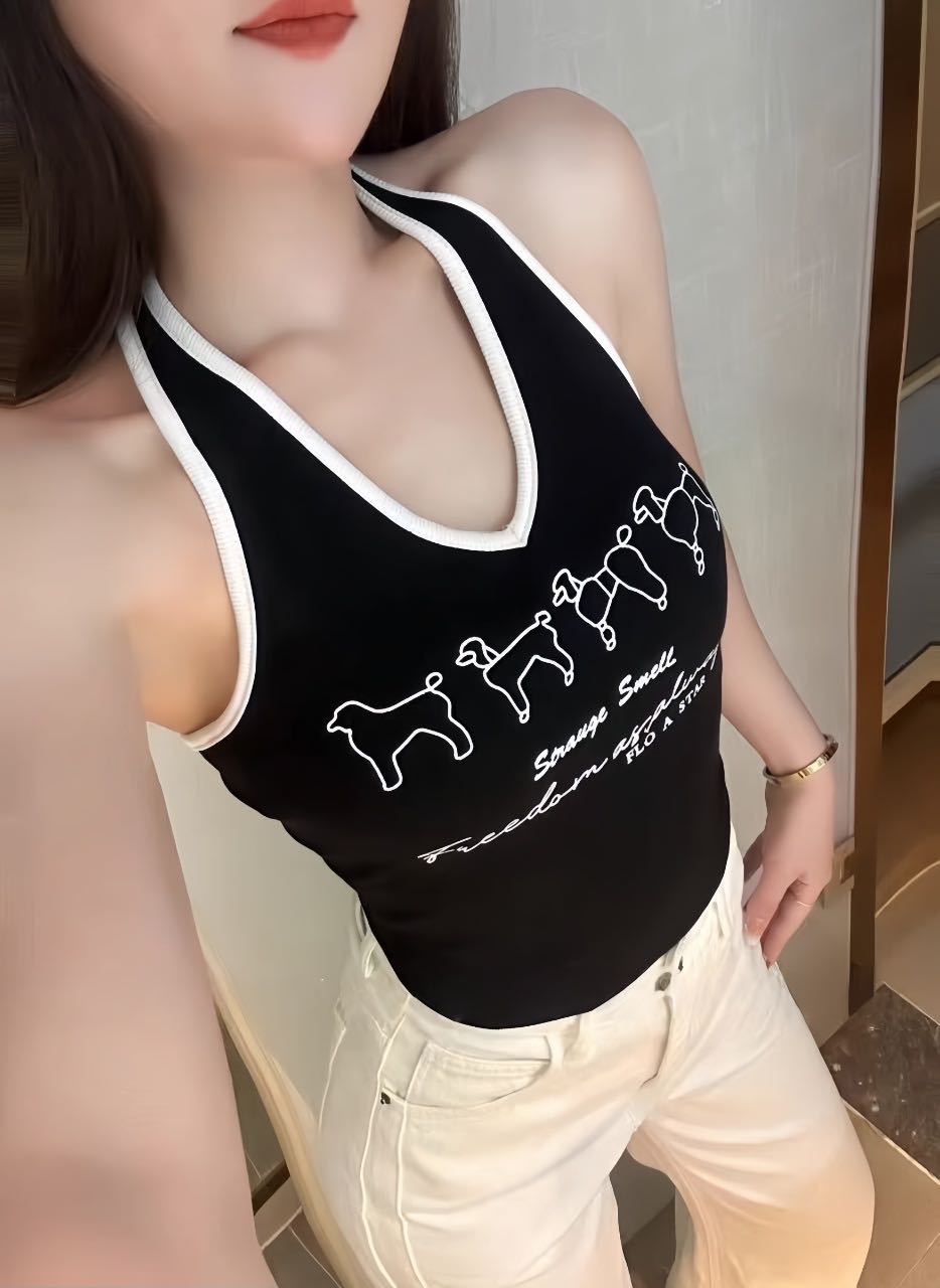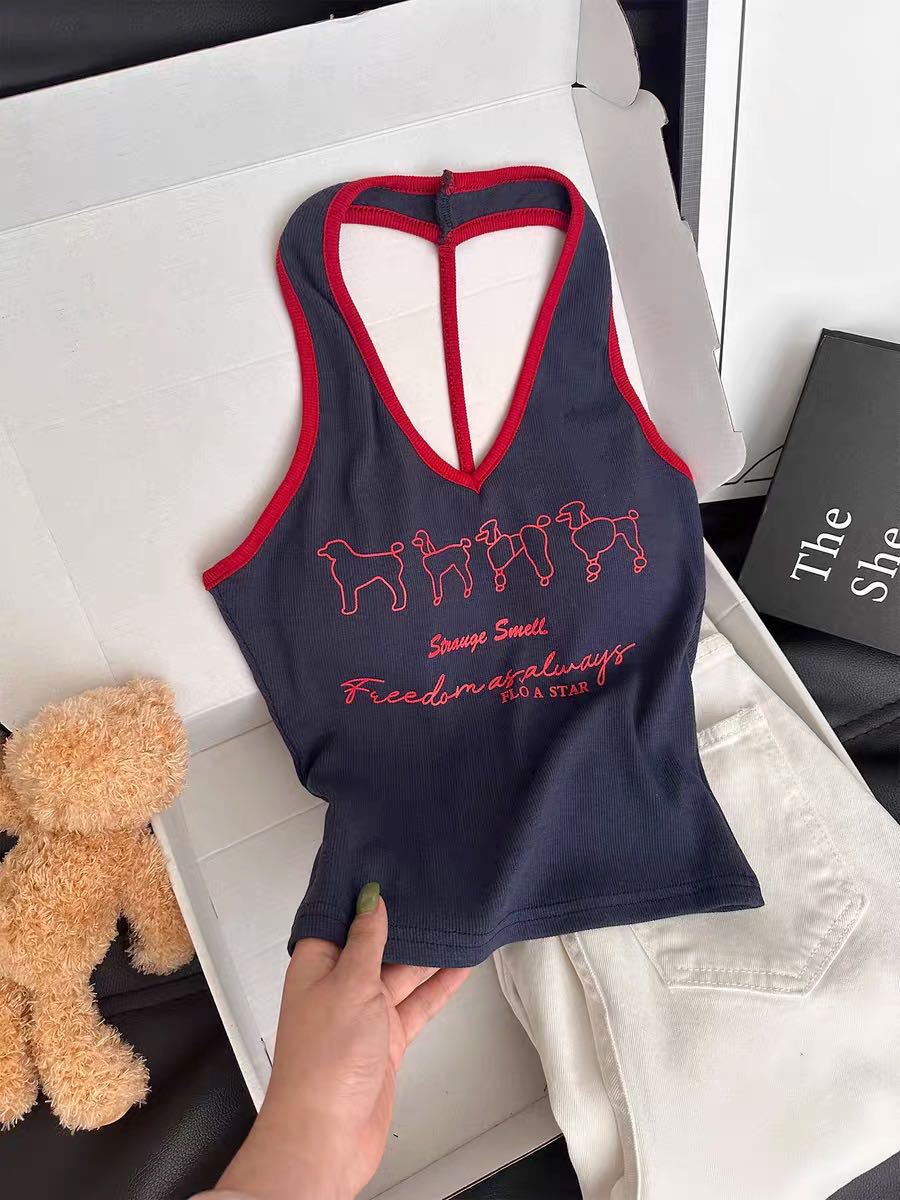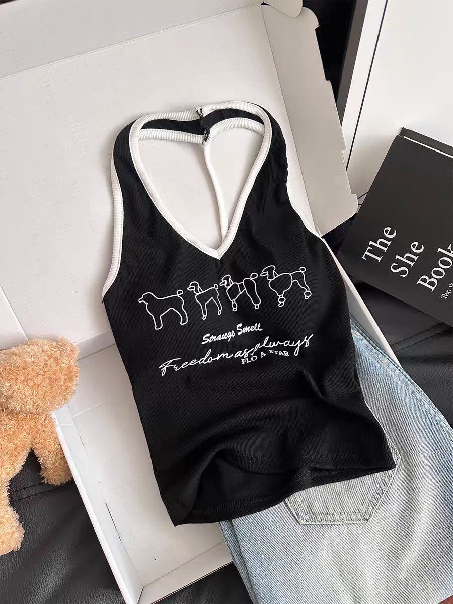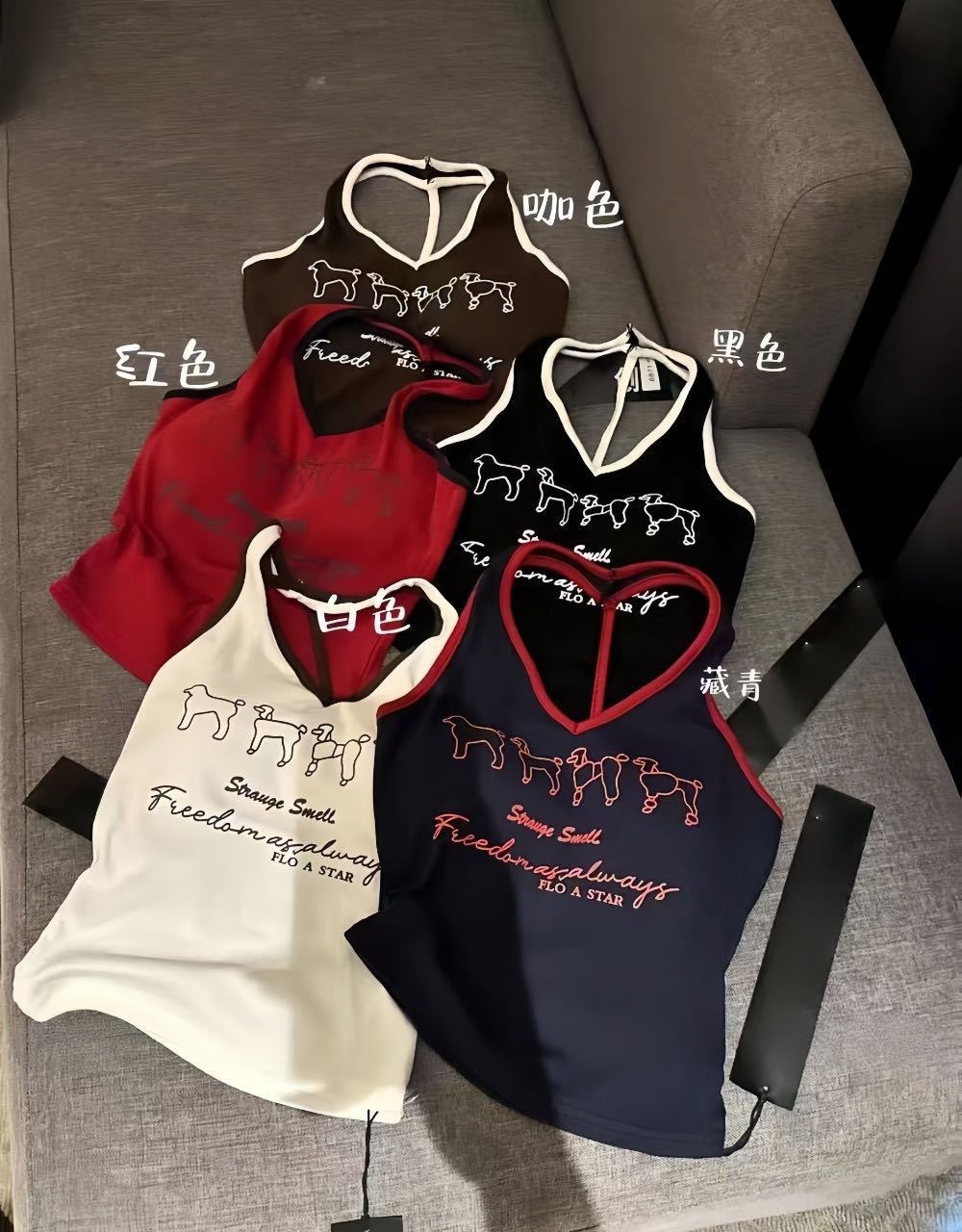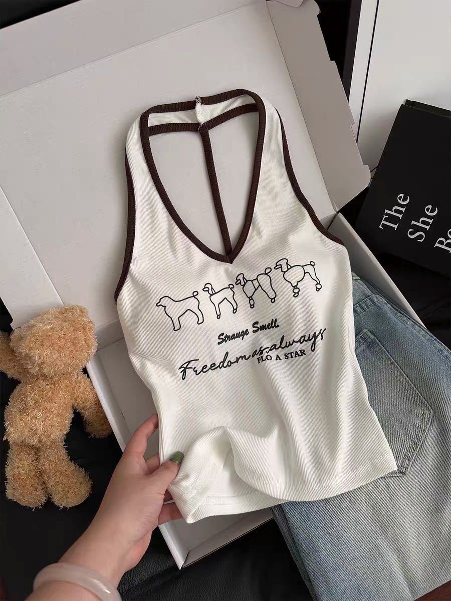 33040#甜辣字母挂脖背心小吊带女夏季修身显瘦内搭露背短款上衣