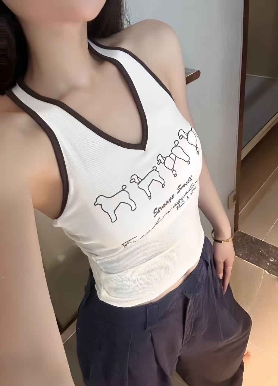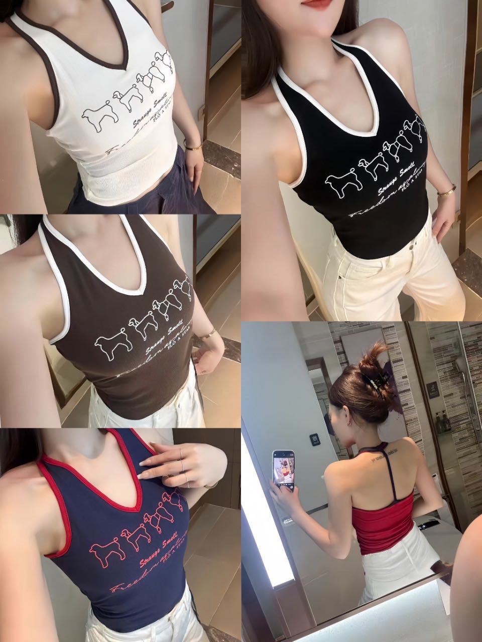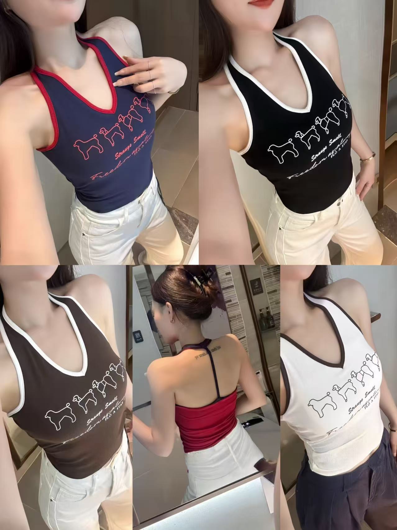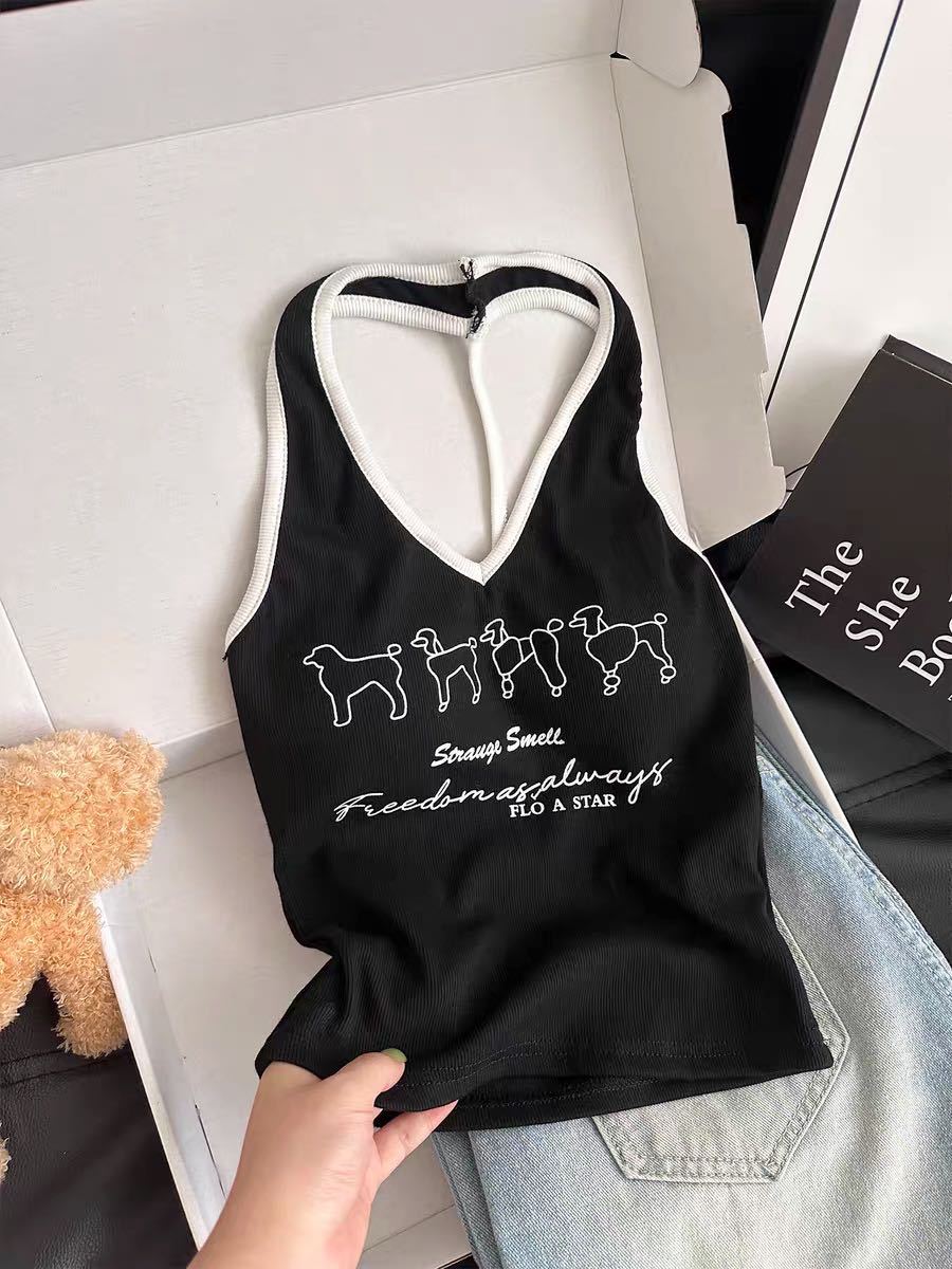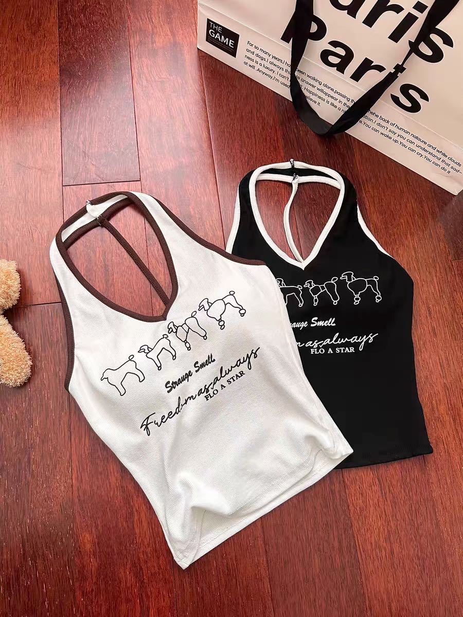 33040#甜辣字母挂脖背心小吊带女夏季修身显瘦内搭露背短款上衣