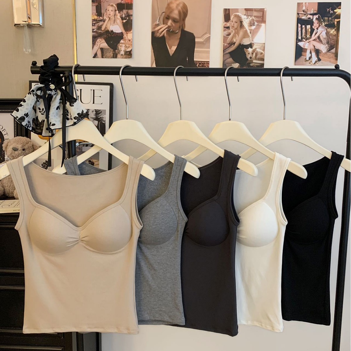 33047#新款磨毛褶皱吊带背心无钢圈一体杯透气舒服宽肩带裹胸美背