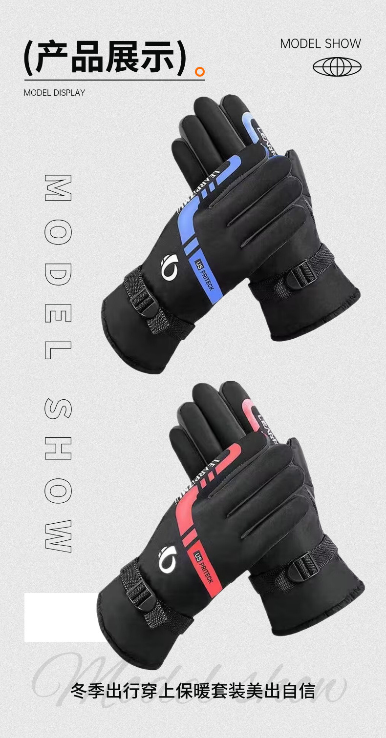 滑雪手套男冬季保暖加绒加厚防滑防风触屏户外开车运动骑行手套男