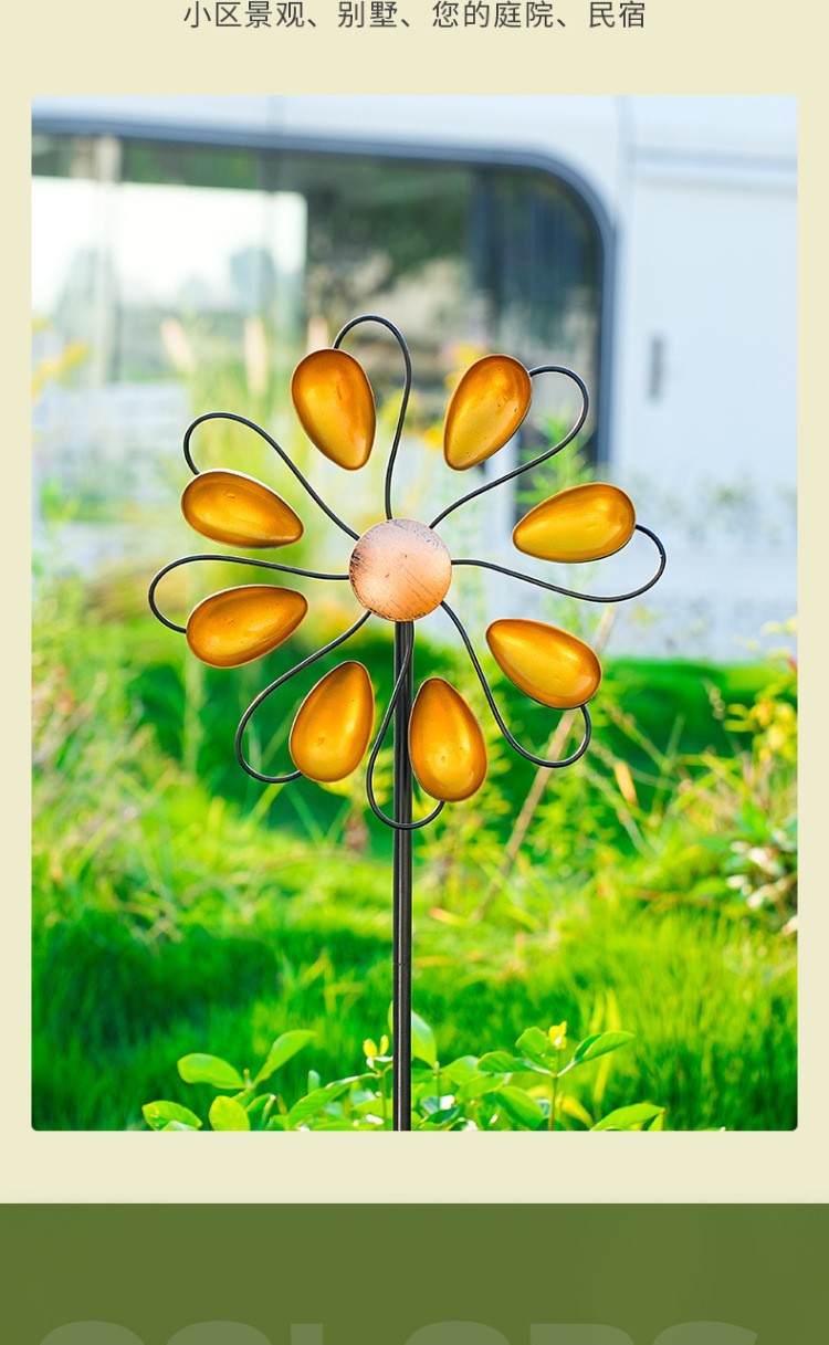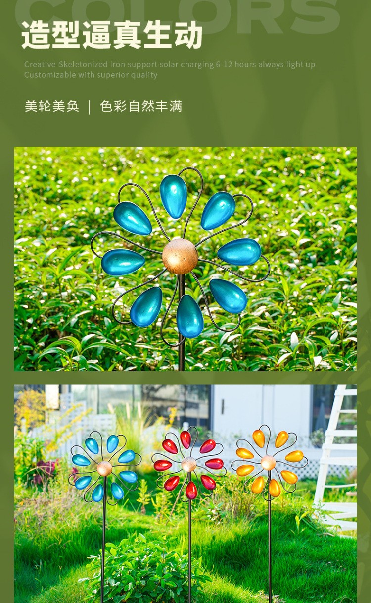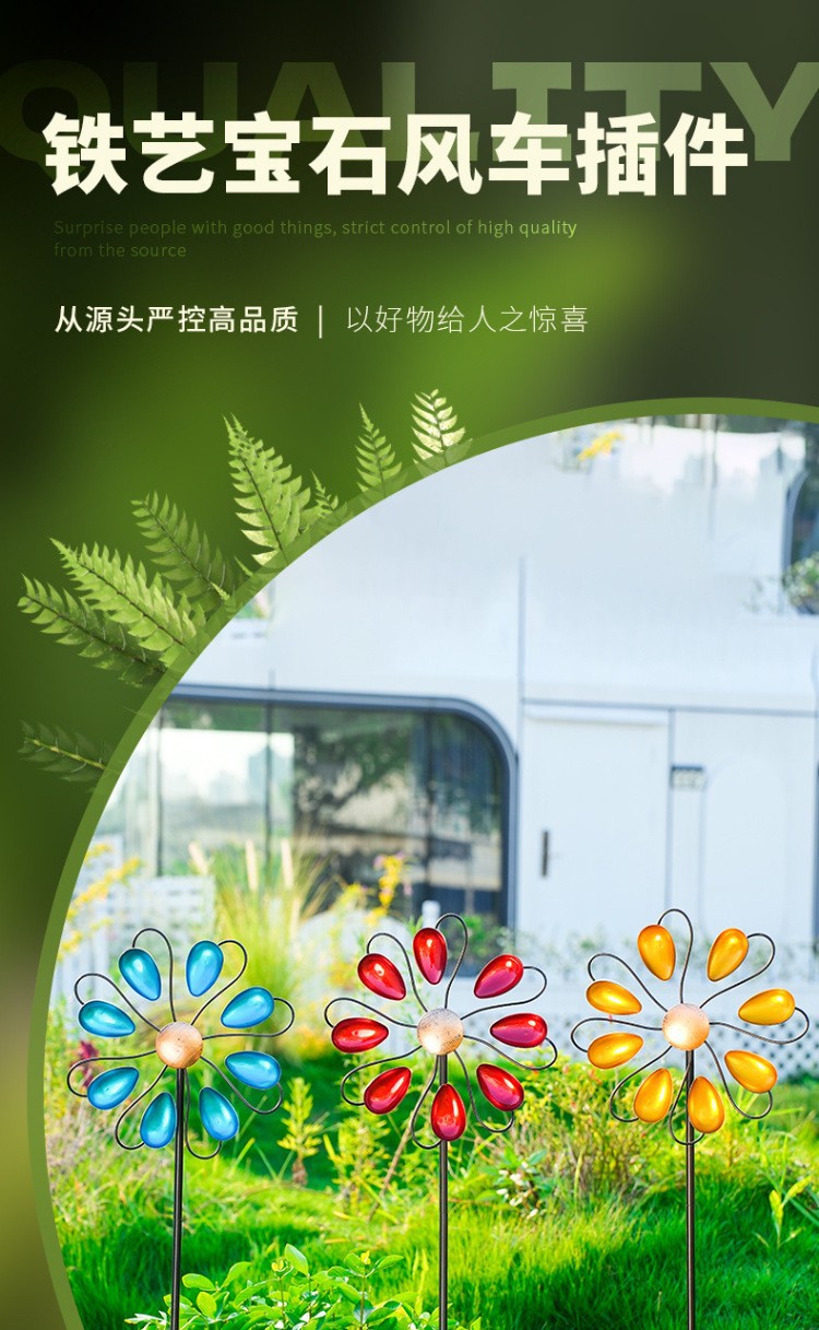 铁艺旋转宝石风车户外庭院花园风车插件装饰摆件三色旋转宝石风车