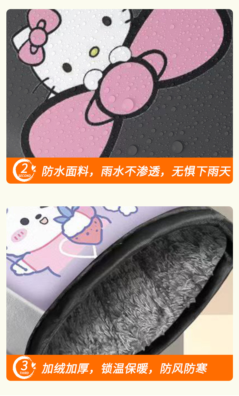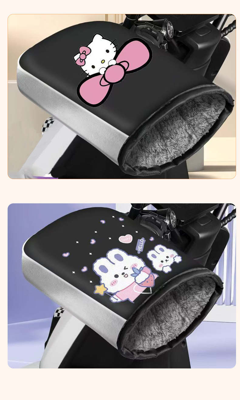 冬款加绒加厚骑行手套电动车把手套北极绒卡通图案保暖电瓶车手套