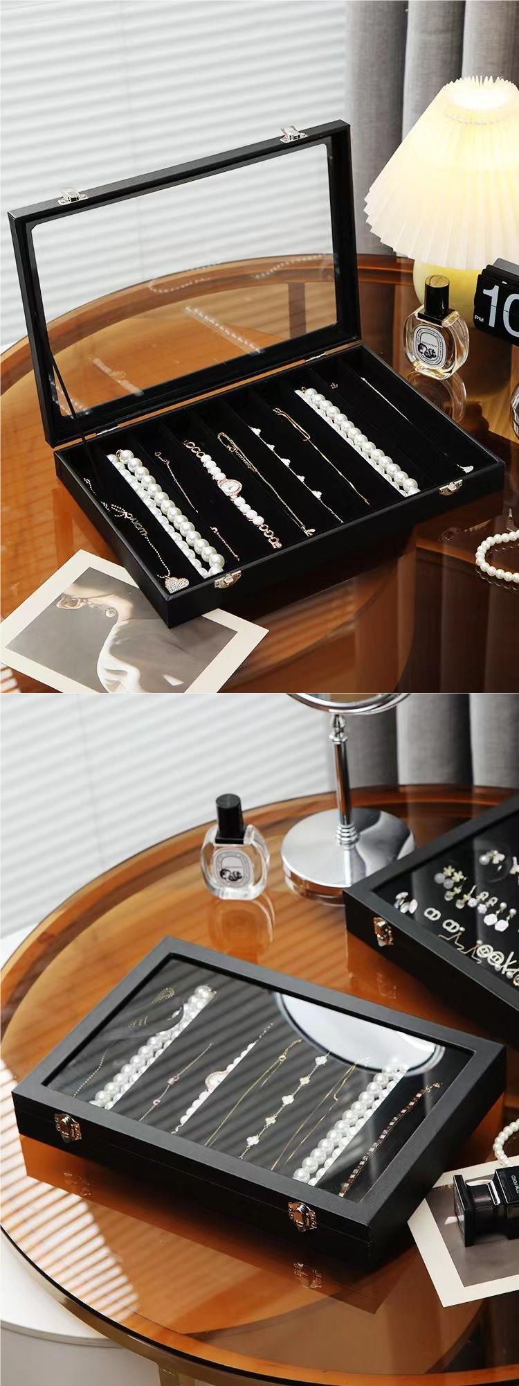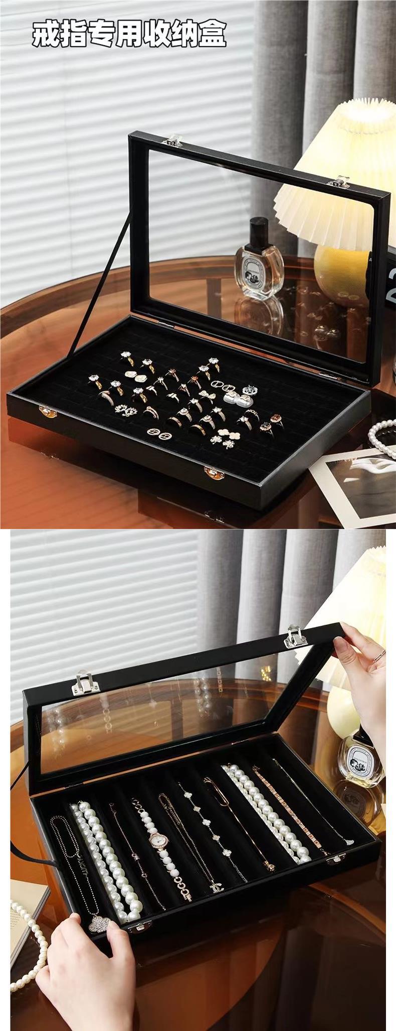 耳环收纳盒大容量防尘玻璃高档珠宝箱耳坠戒指手镯项链透明展示盒