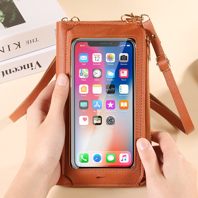 2025可触屏手机包女斜跨包防盗多功能透明时尚小包钱包手机袋防摔