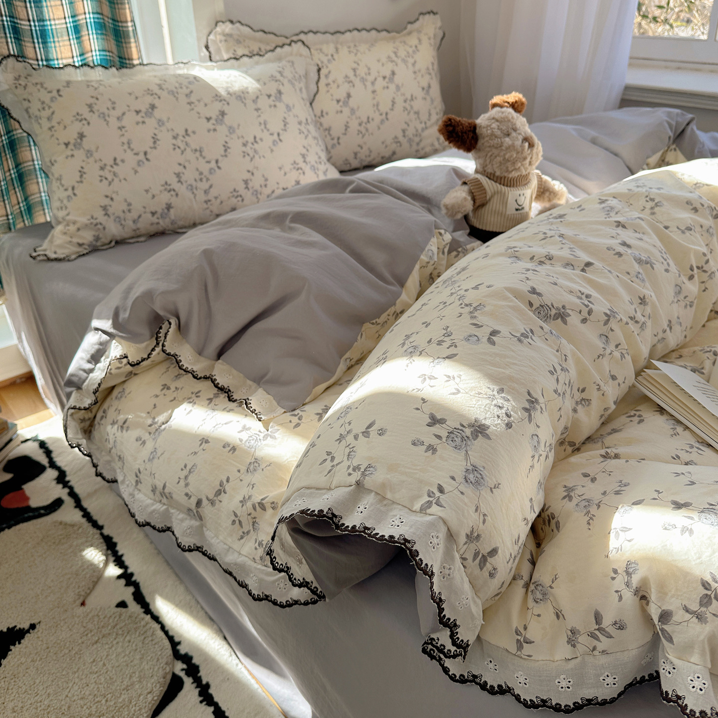 ins碎花全棉花边四件套A类亲肤公主风韩版纯棉被套床单笠三件套4