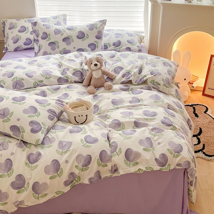 小清新純綿四点セットins裸寝綿シーツ布団カバー水洗い綿ベッド笠金親肌寝具