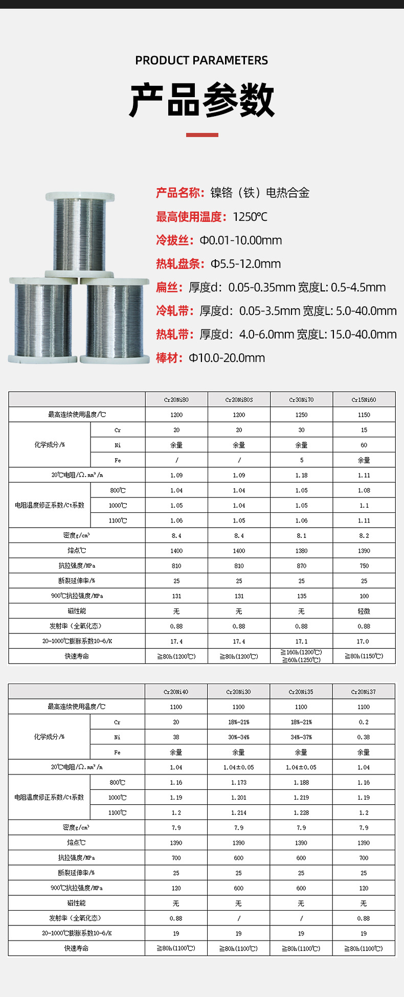 钢花牌镍铬电热合金Cr20Ni80S高温电热合金丝1200℃镍铬加热丝