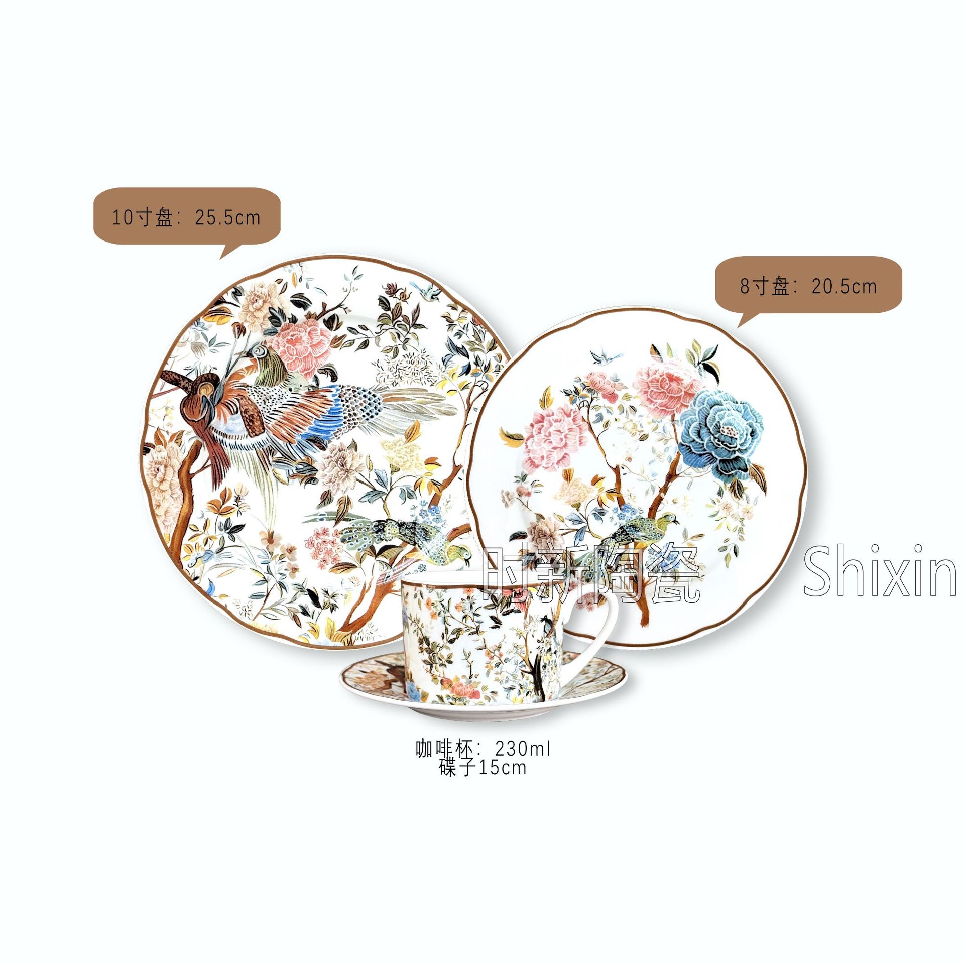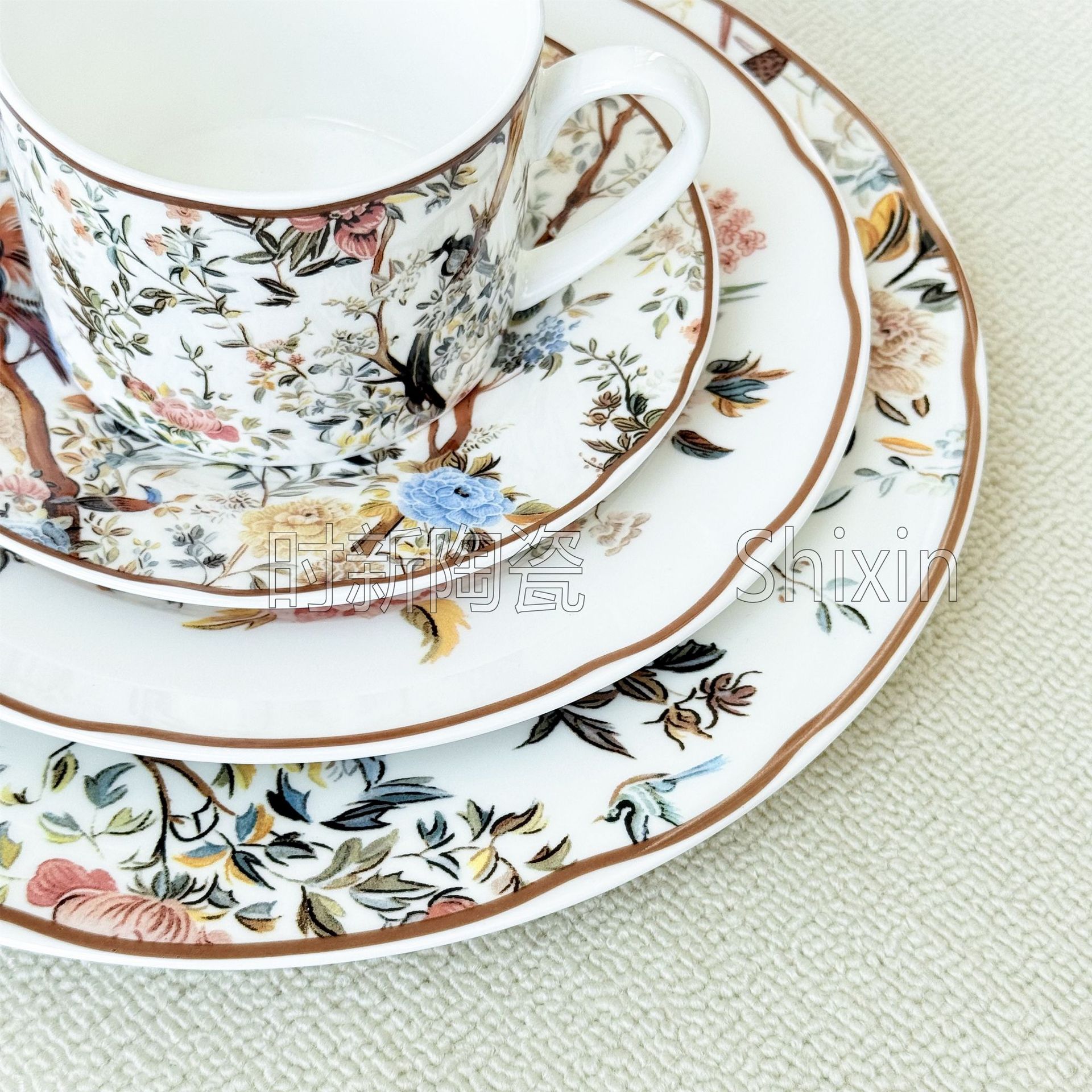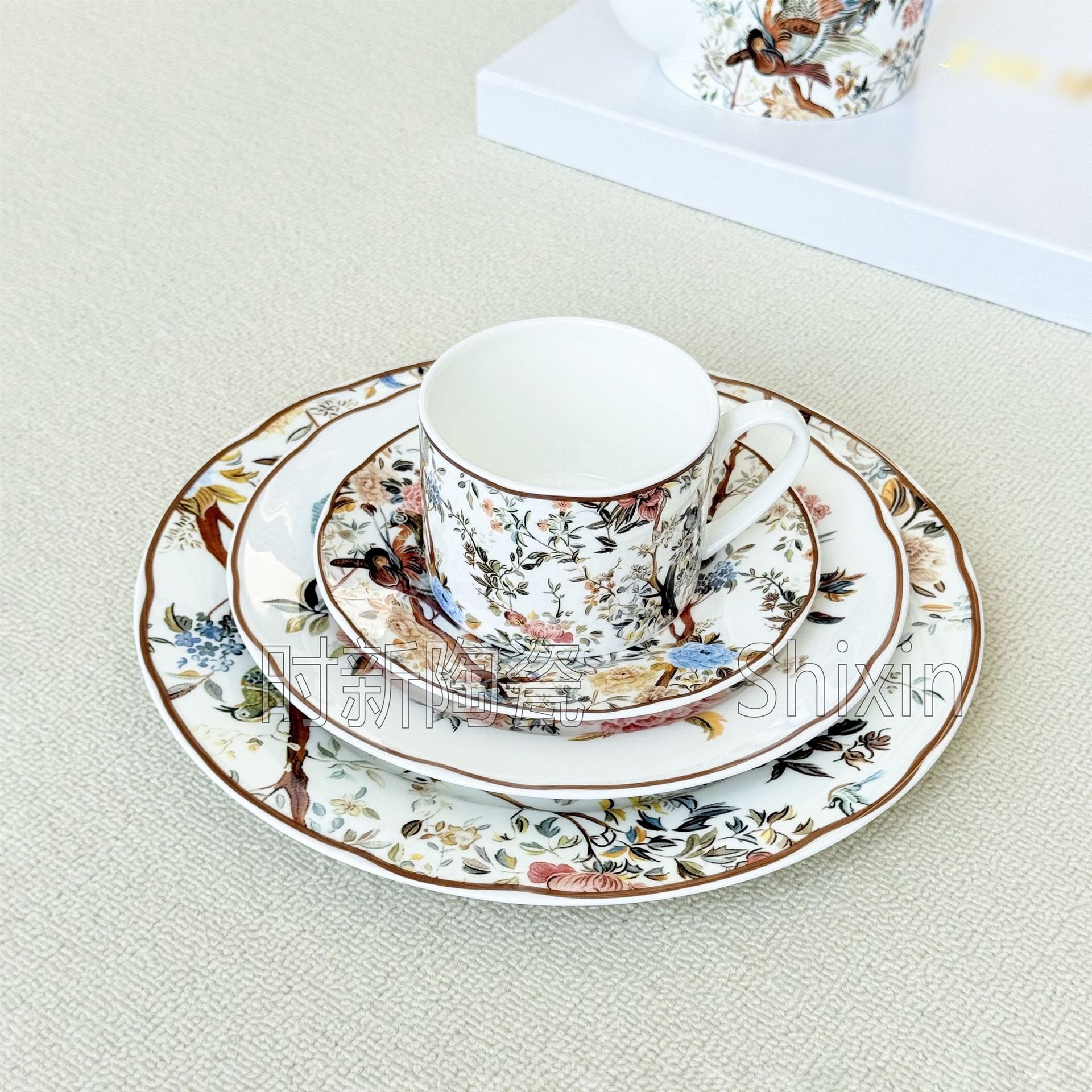 跨境迪家欧式茶具套装咖啡杯碟下午茶花鸟系列西餐盘平盘礼盒包装