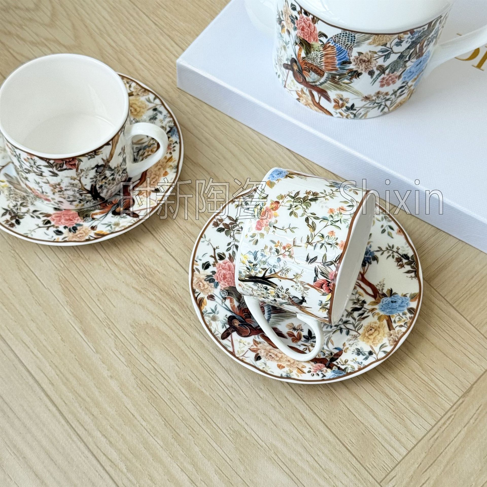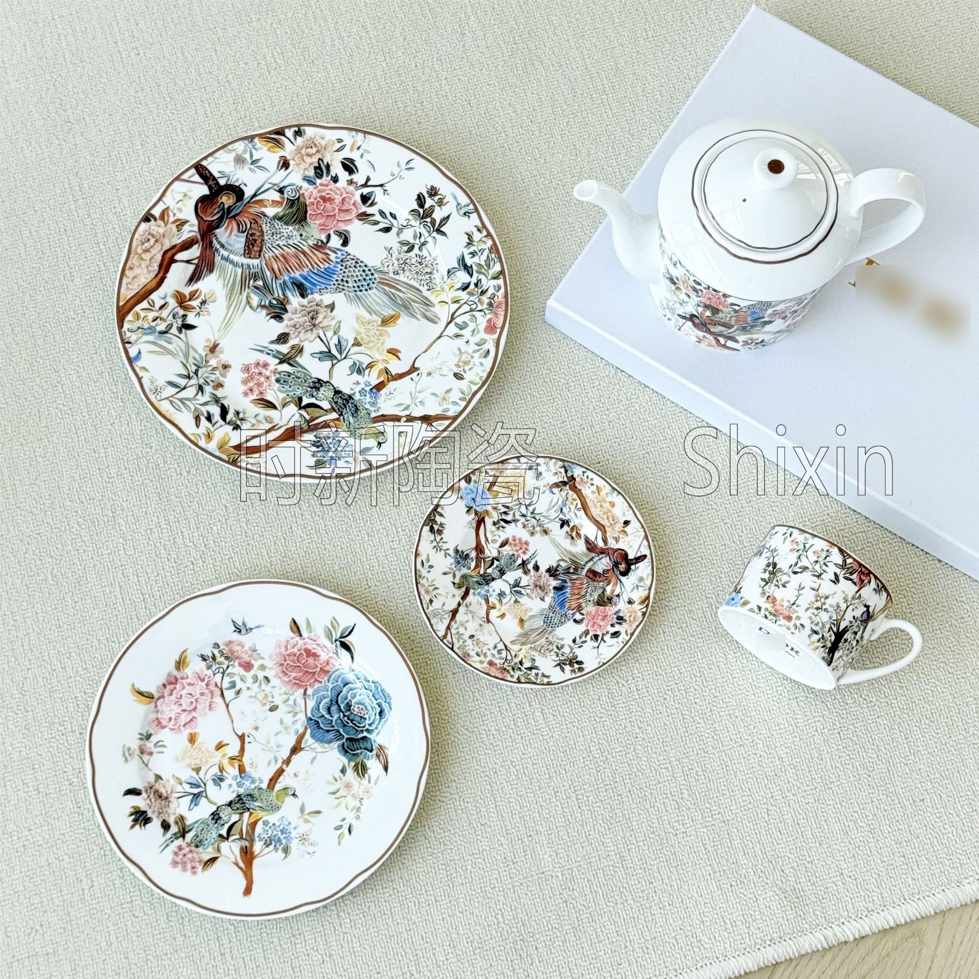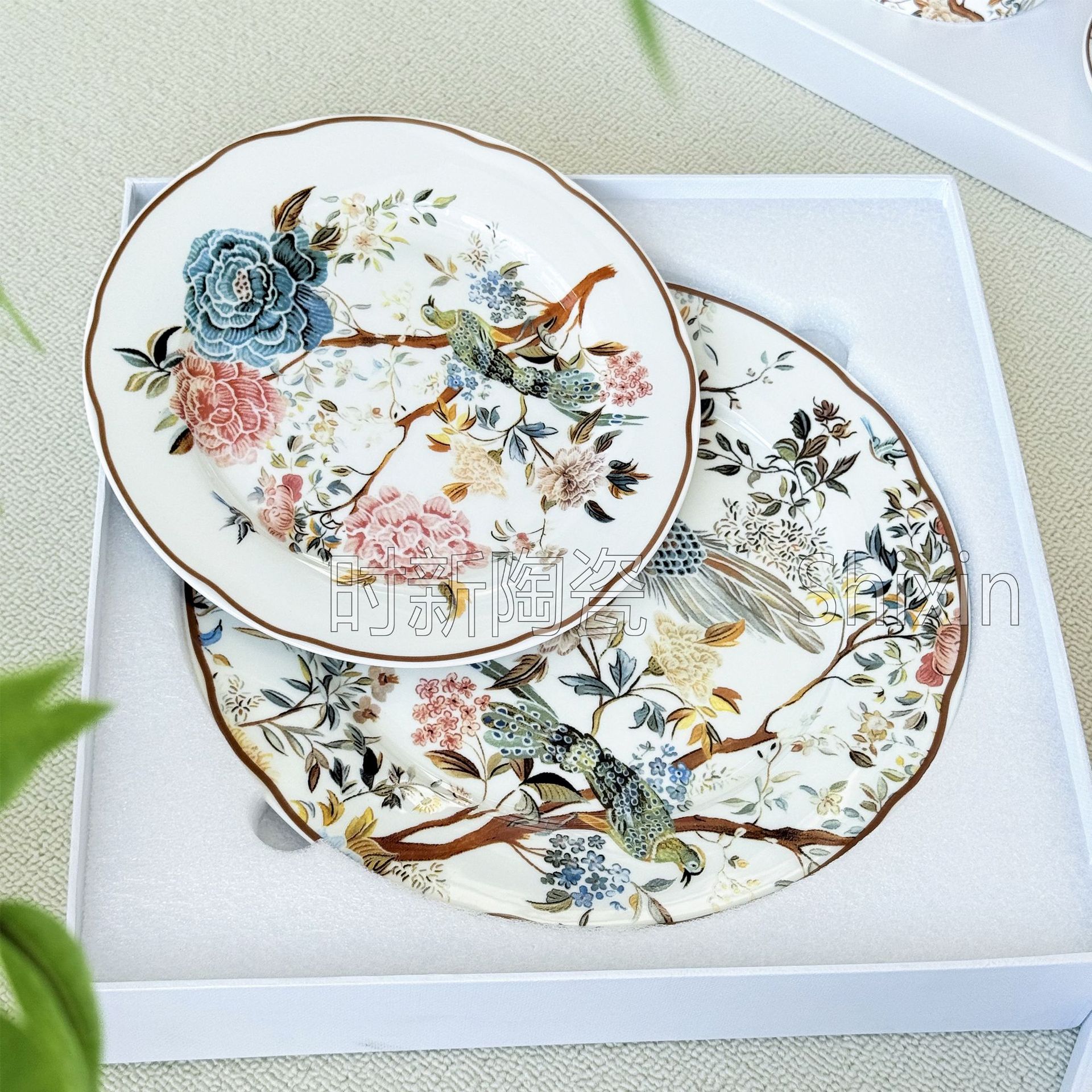 跨境迪家欧式茶具套装咖啡杯碟下午茶花鸟系列西餐盘平盘礼盒包装