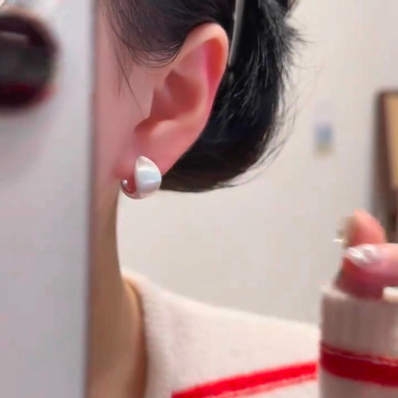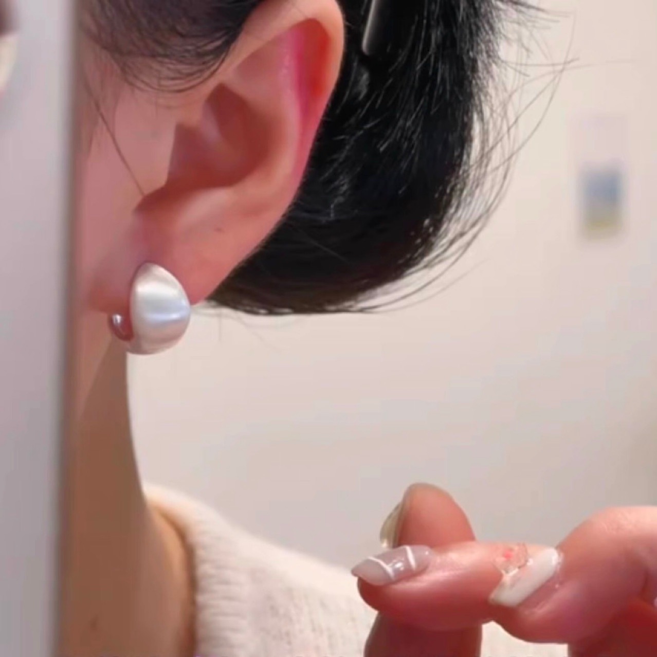 鞠婧は同じタイプのイヤリングの銀色の蝶をかき集めて、ジルコンの耳の飾りをつけます。