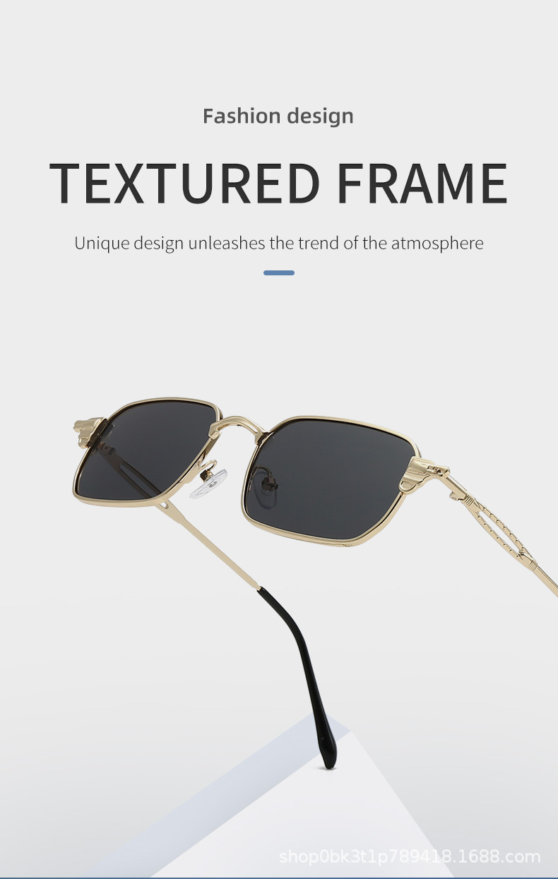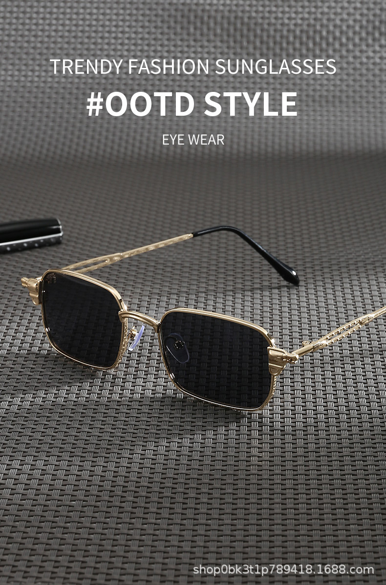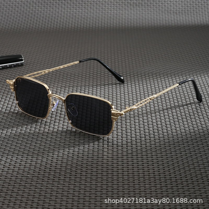 复古跨境欧美金属镂空镜腿太阳镜男高级感开车出行方形墨镜女新款