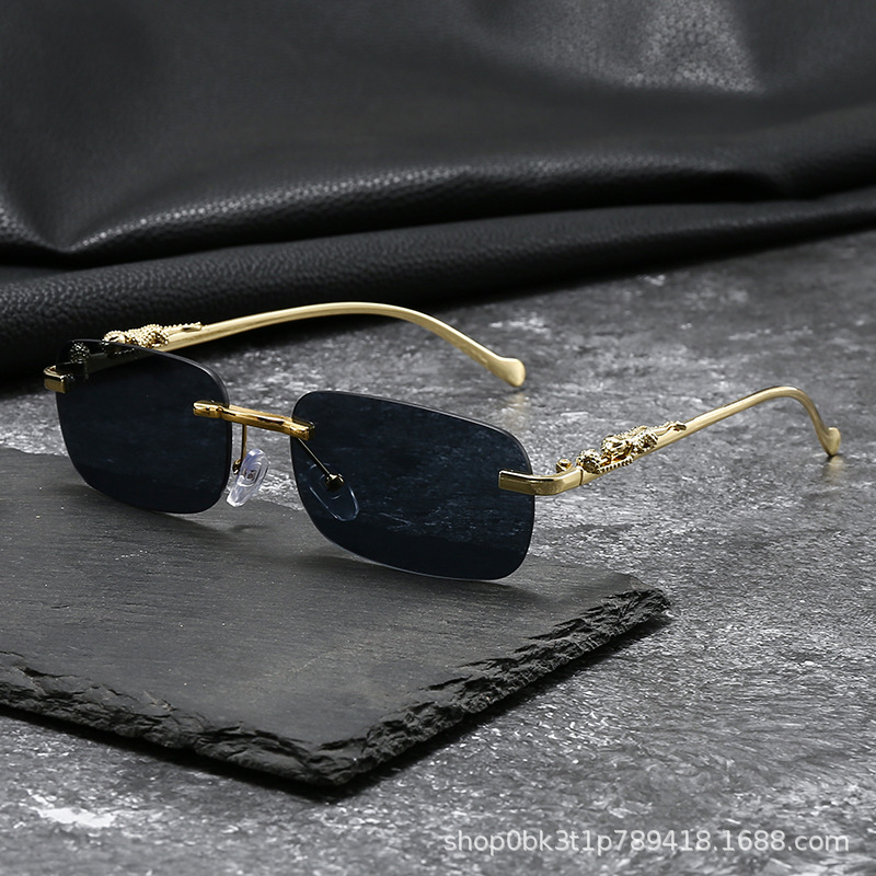 クロスボーダー卸売り金色ファッションチーター装飾サングラスカラーレトロ無枠角豹頭金属サングラス