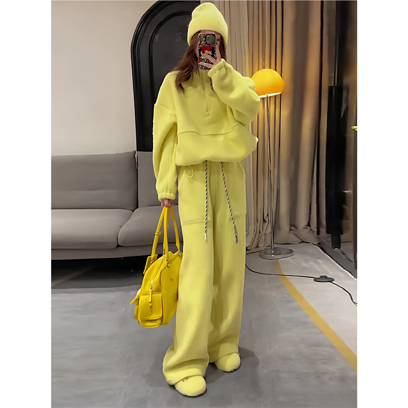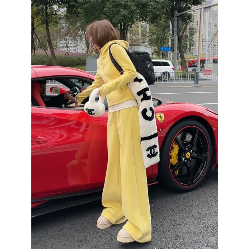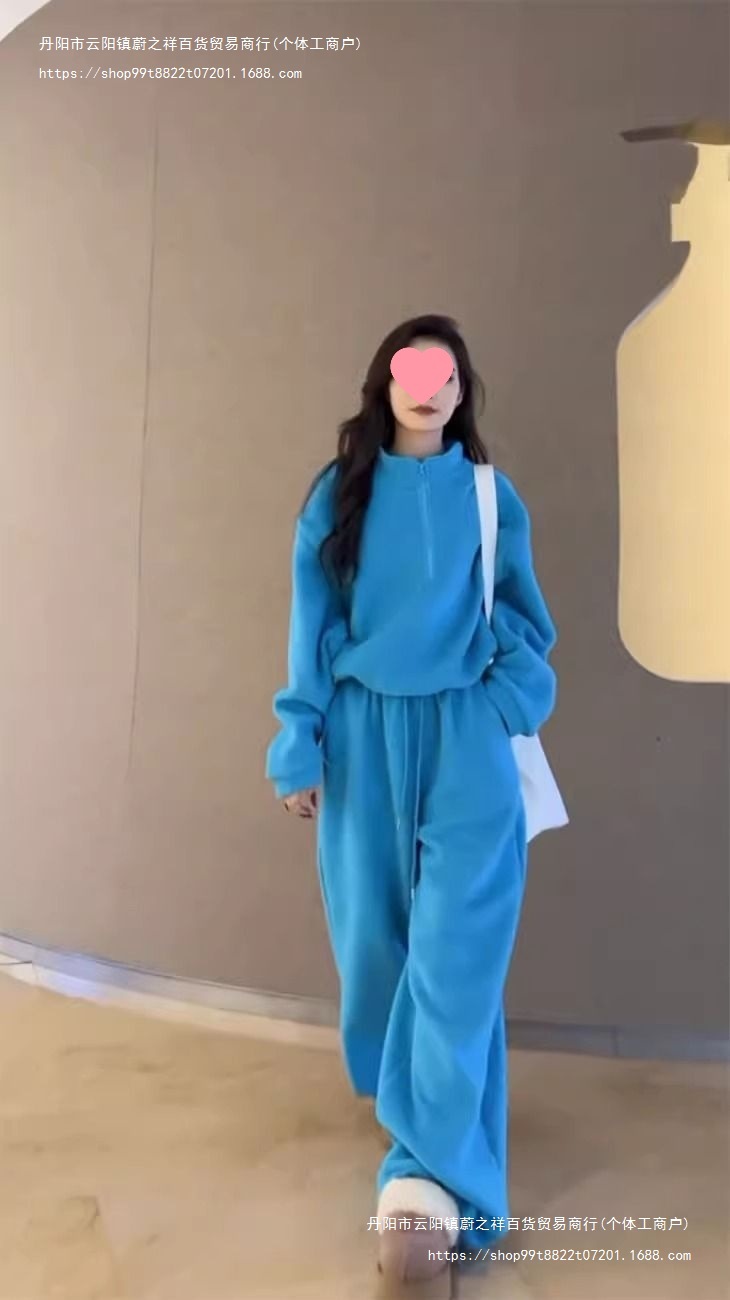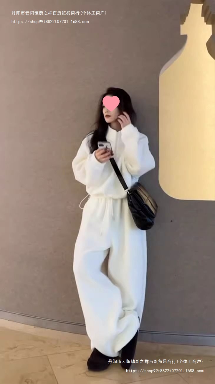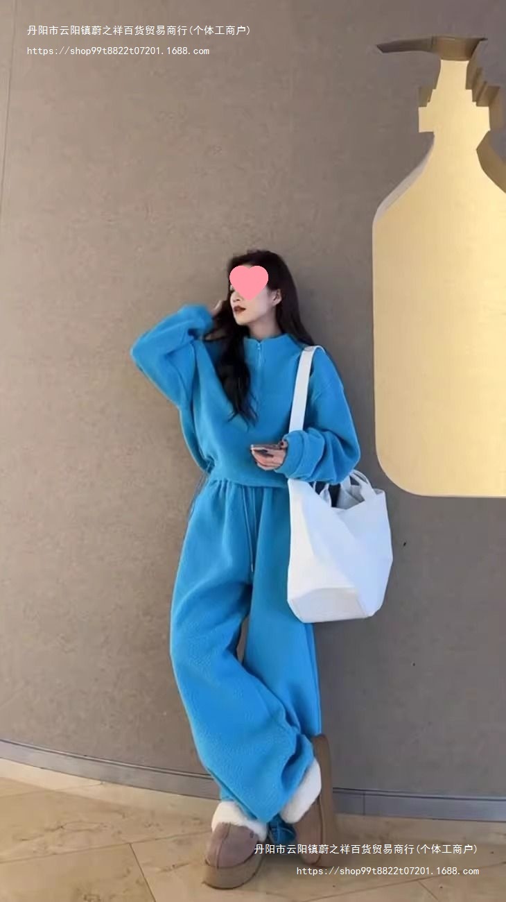 深圳南油韩系一整套深冬减龄超火双面绒外套阔腿裤运动休闲两件套