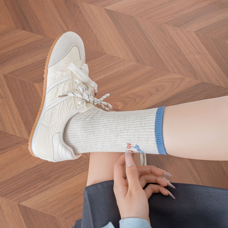 Zhuji 靴下女性の春と秋の純粋な綿のミッドカーフソックスレトロトレンディな吸汗性と消臭レターストライプ綿の靴下スポーツ女性の靴下