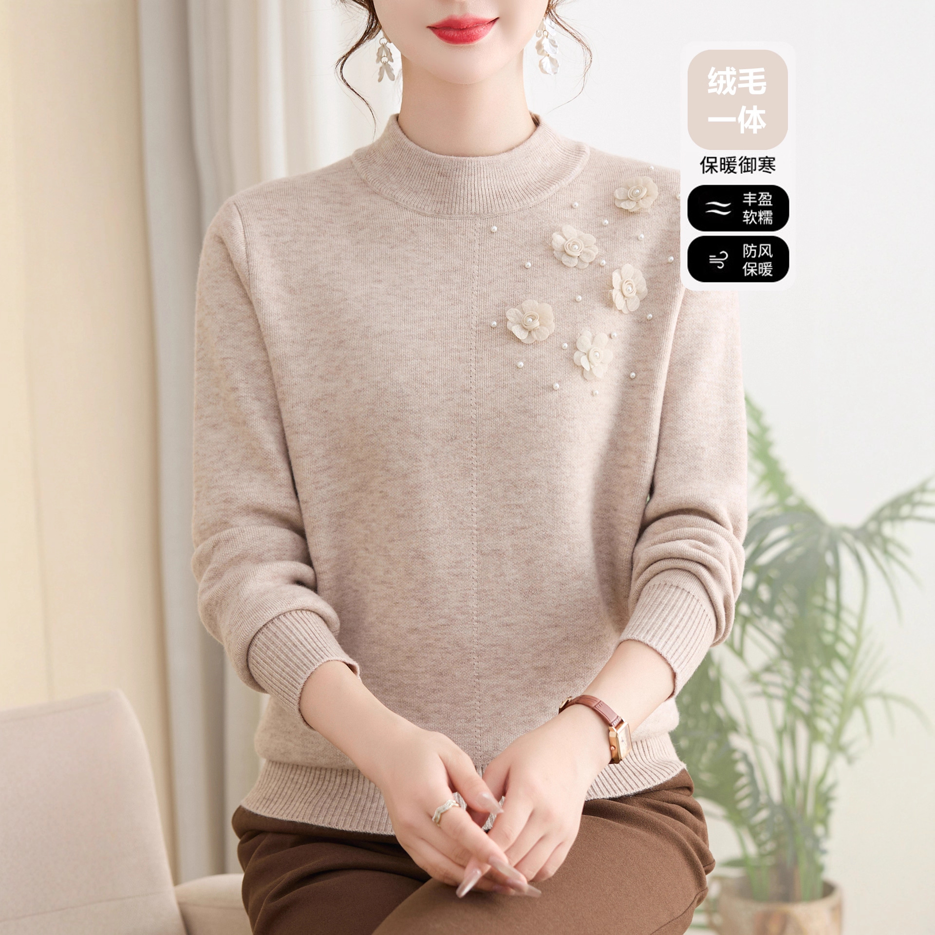 妈妈装2025新款半高领针织毛衣中老年女装秋冬减龄加绒打底衫上衣