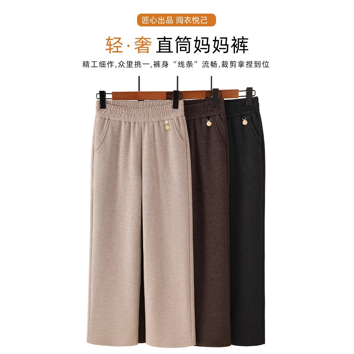 2025秋冬新款妈妈装休闲长裤松紧腰直筒女裤中老年女装女裤批发