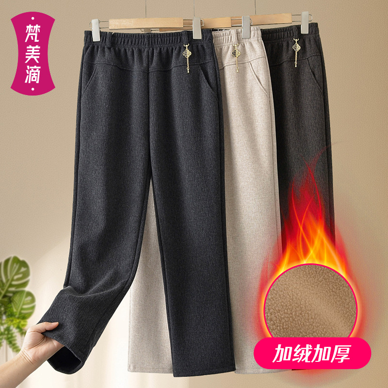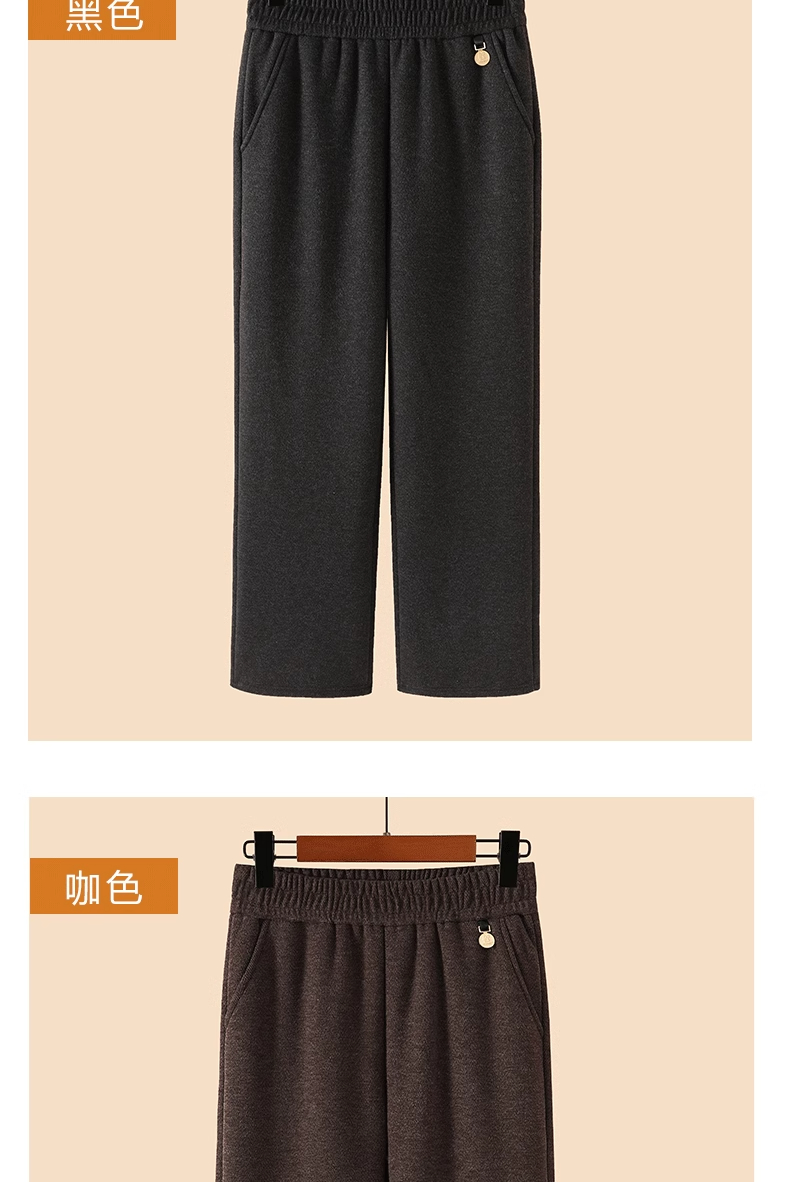 妈妈冬装时尚保暖休闲裤子2025新款中老年女装高腰直筒阔腿裤