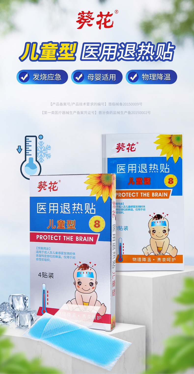 葵花医用退热贴退烧贴婴幼儿童小孩孕妇发烧发热物理降温冰贴冷敷