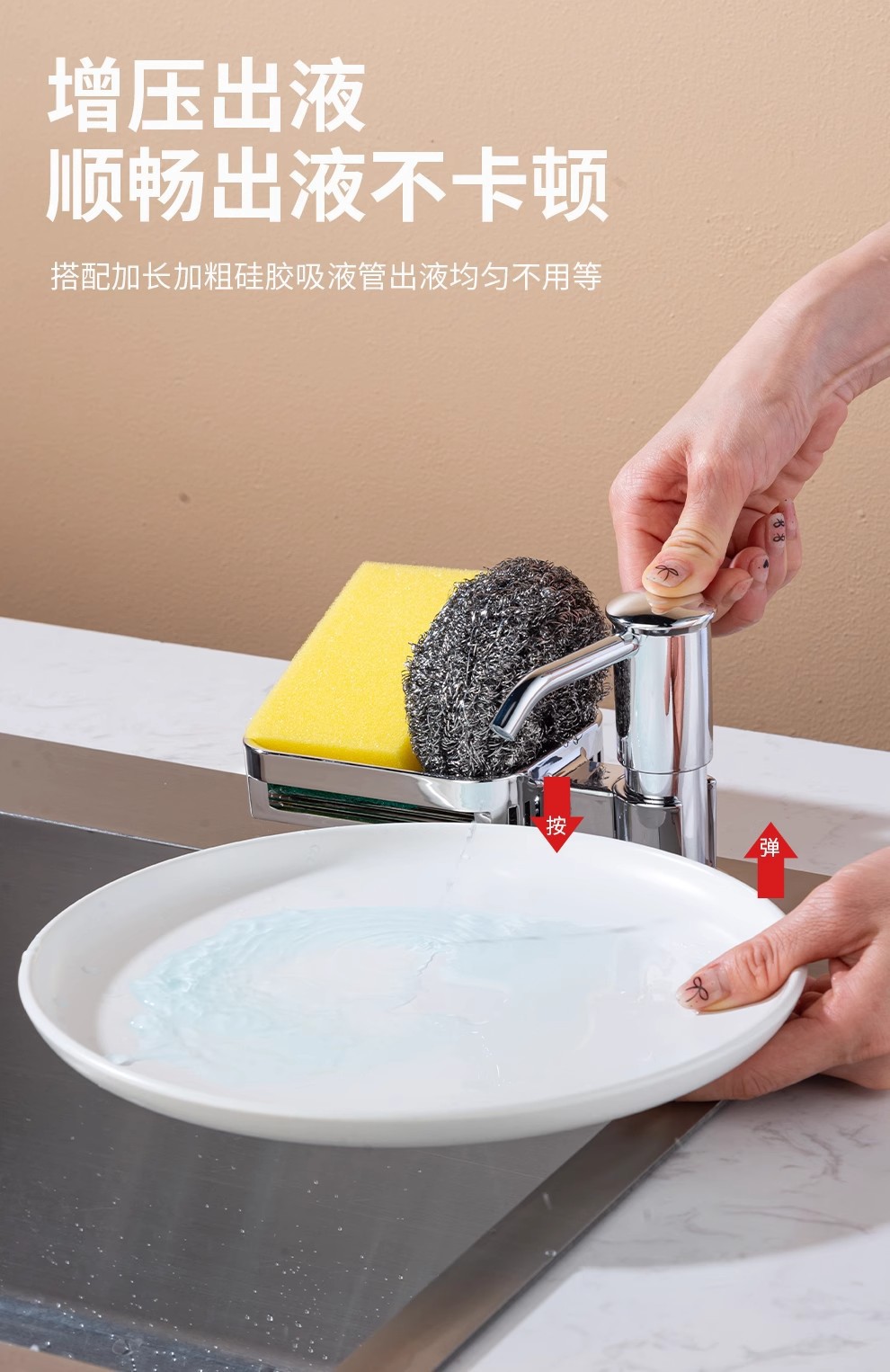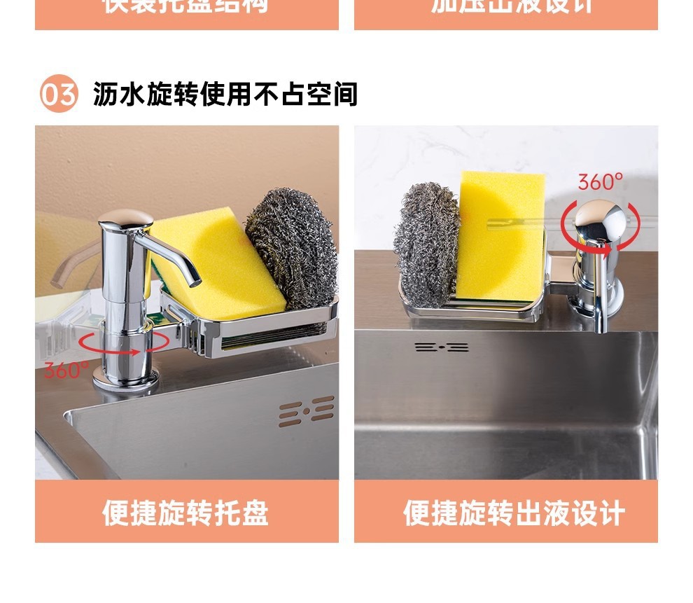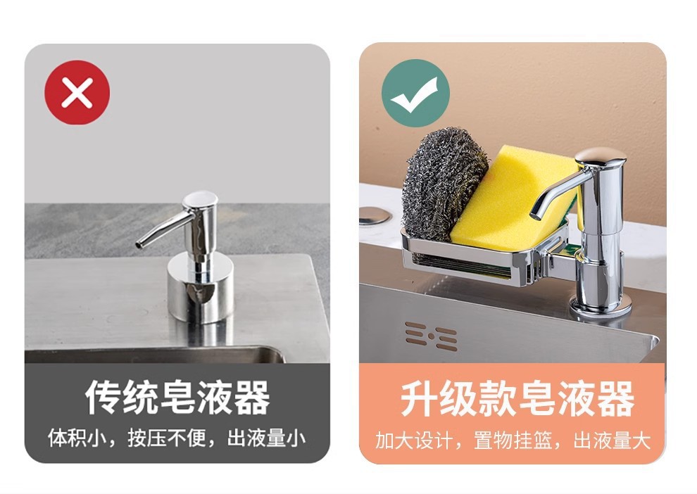 太空铝置物篮水槽皂液器升级款洗洁精压取器菜盆按压泵头大出液量