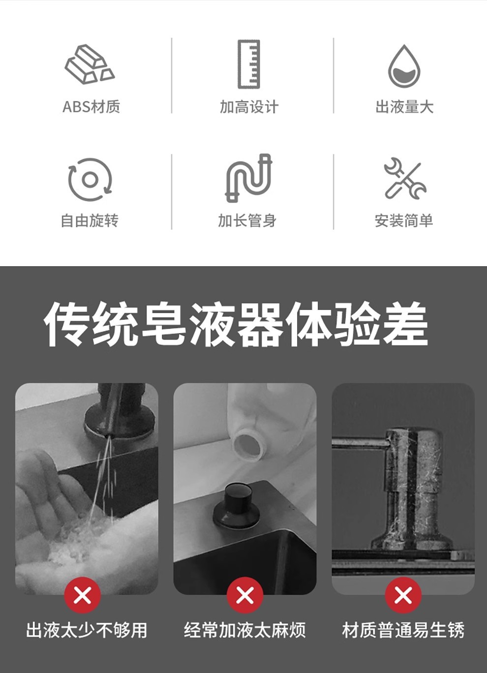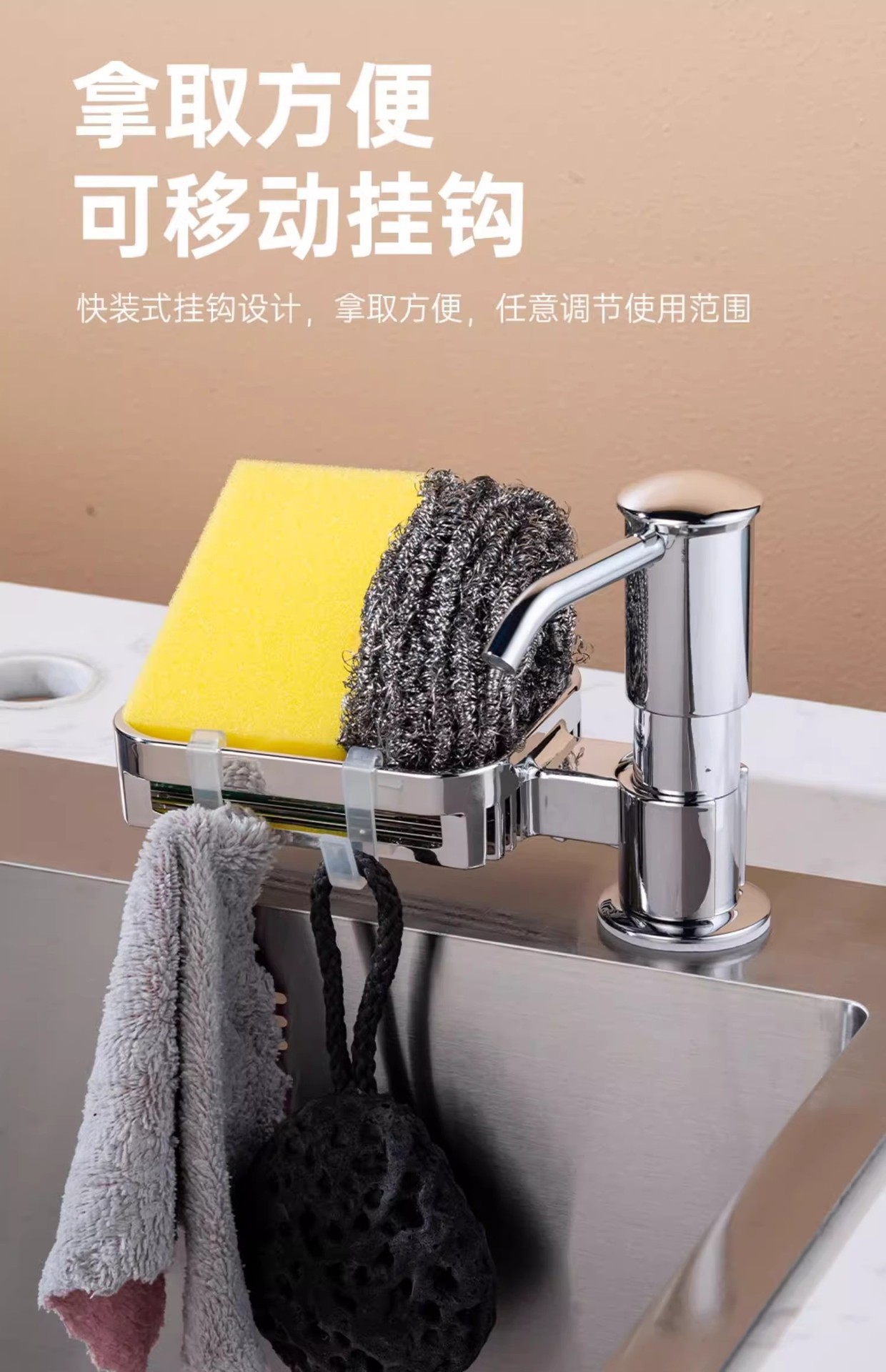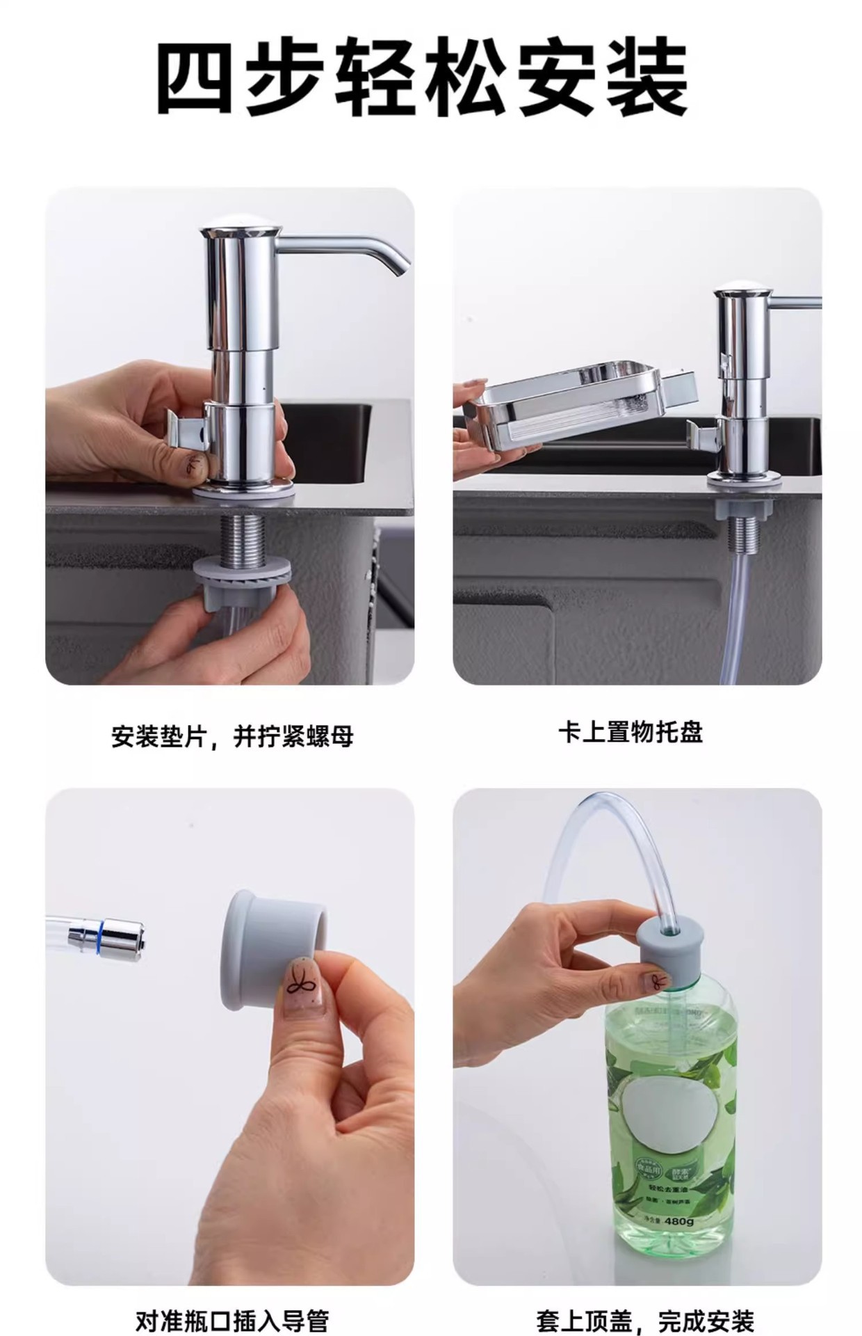 太空铝置物篮水槽皂液器升级款洗洁精压取器菜盆按压泵头大出液量