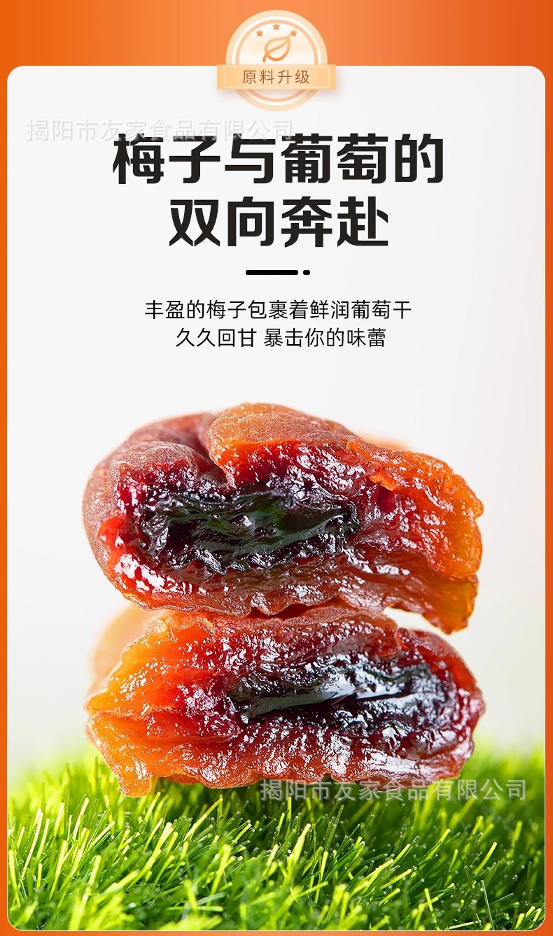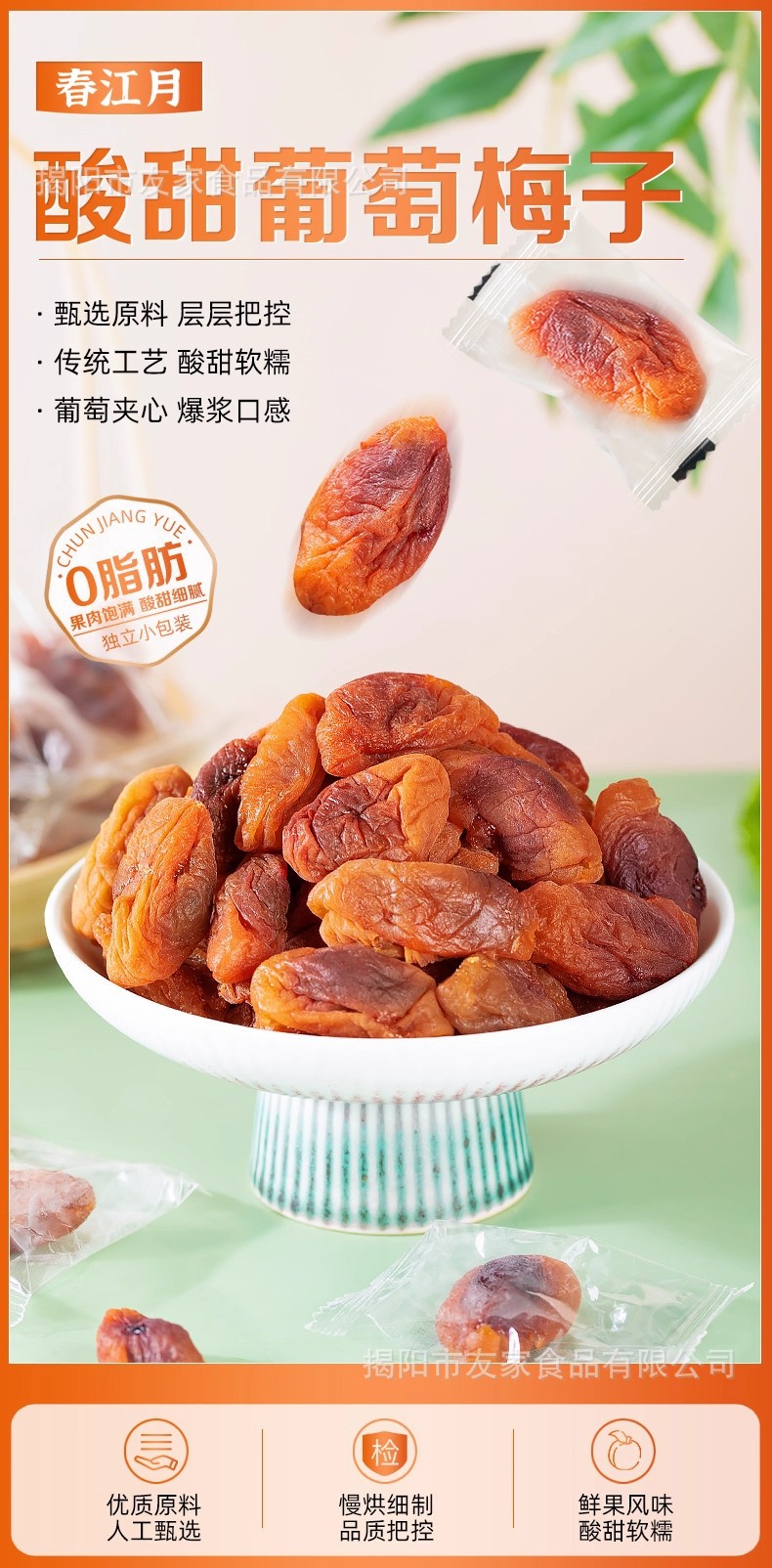 青梅抱葡萄陈皮青梅干夹葡萄干梅有芒果夹心无核酸甜蜜饯网红零食