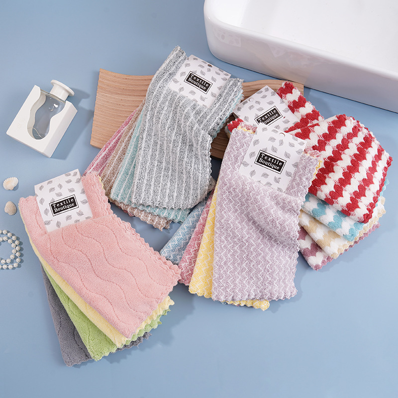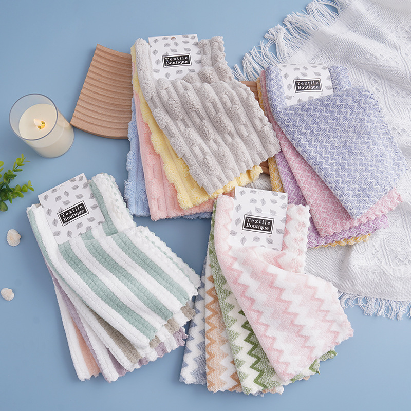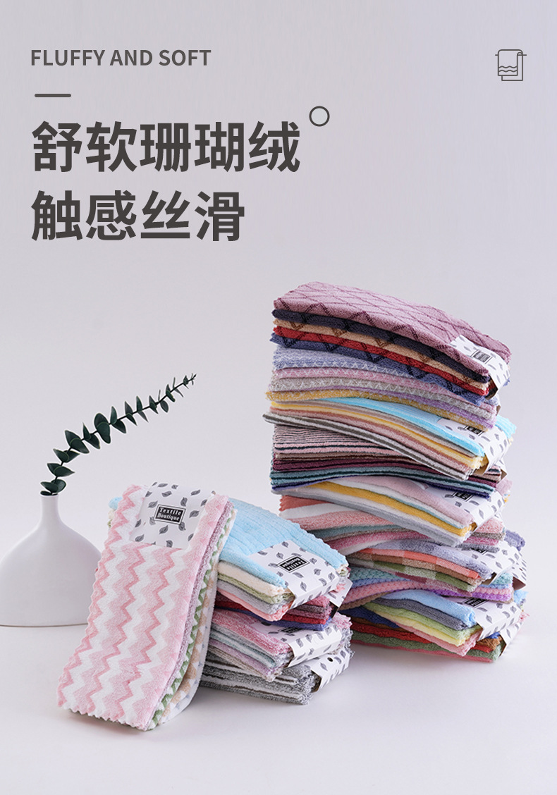 珊瑚绒切边小方巾家用厨房吸水洗碗巾多功能加厚不易掉毛柔软抹布