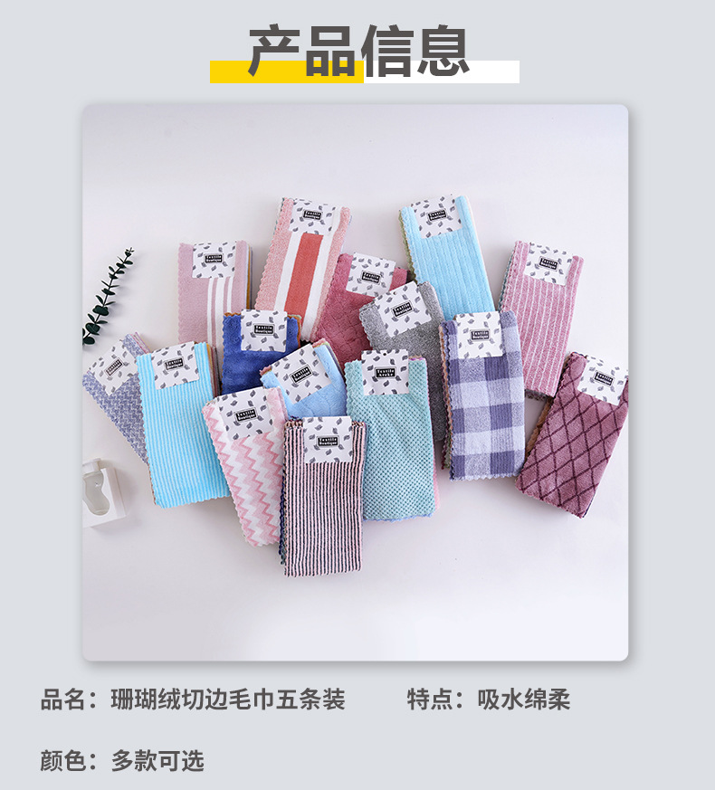 5本のサンゴの毛の小さい方のタオルの子供のよだれのタオルの家庭の吸水の雑巾のサンゴの毛のカードのタオルを詰めます。