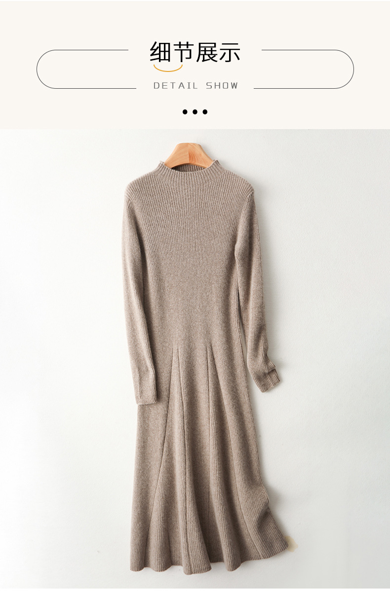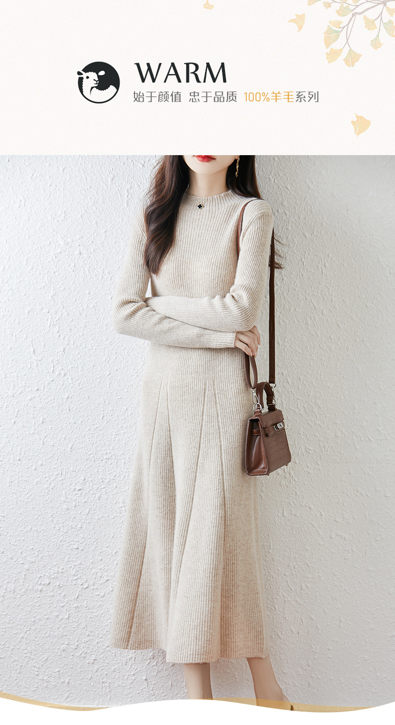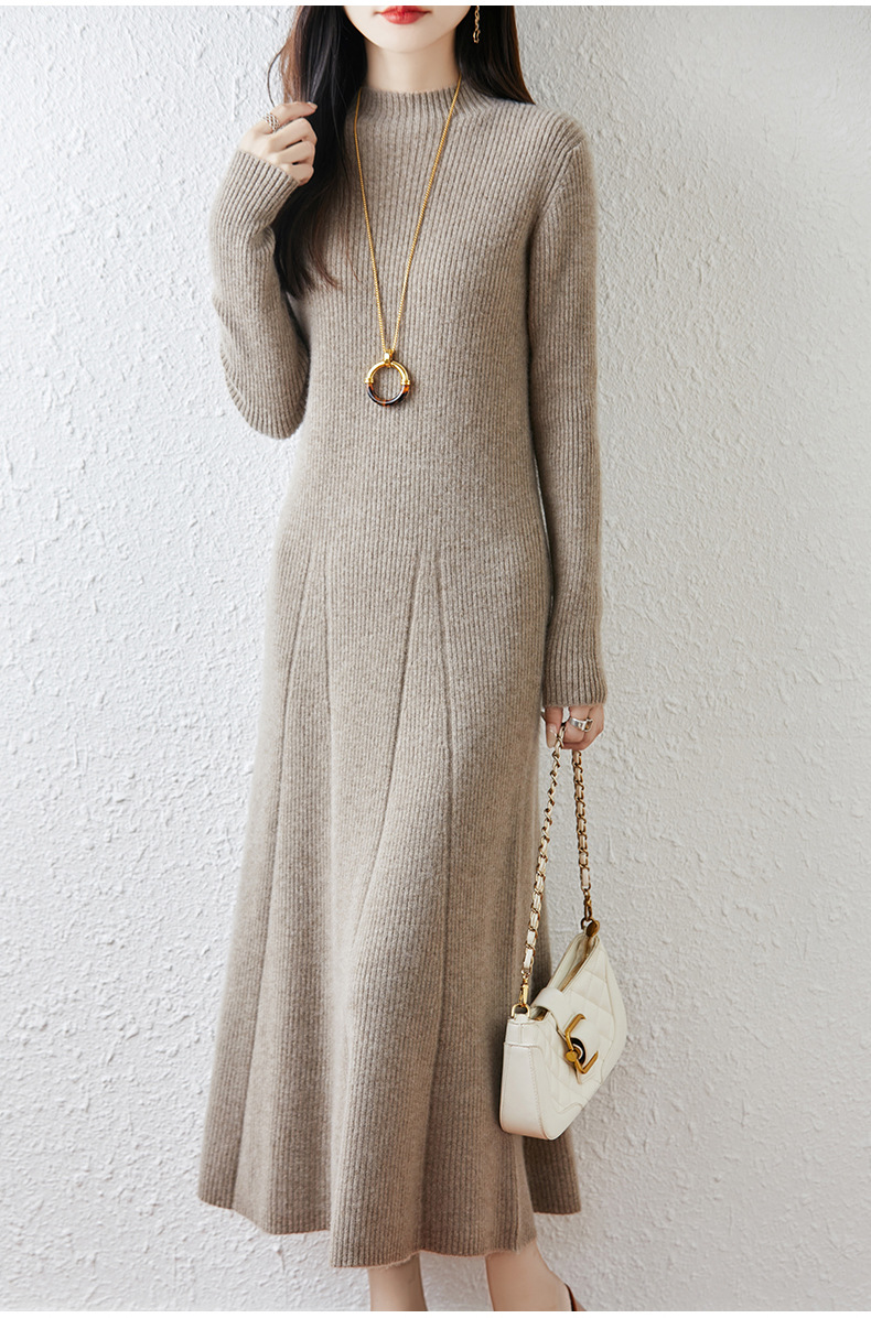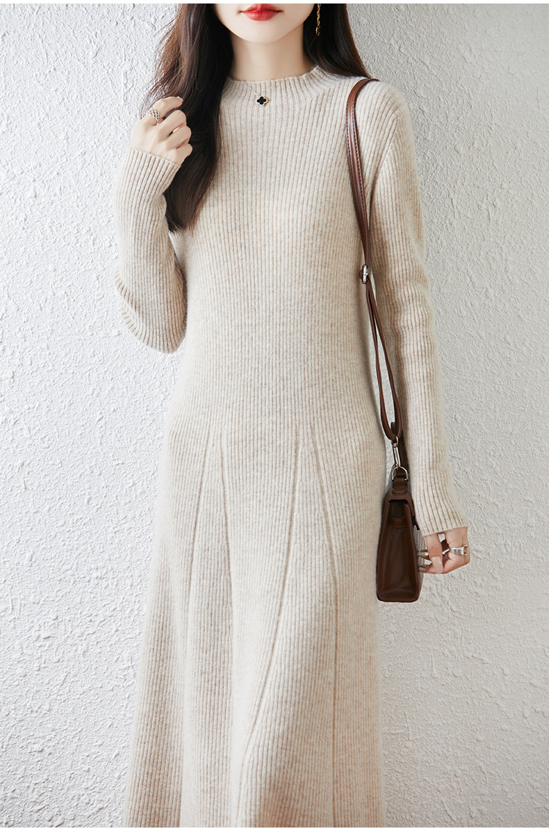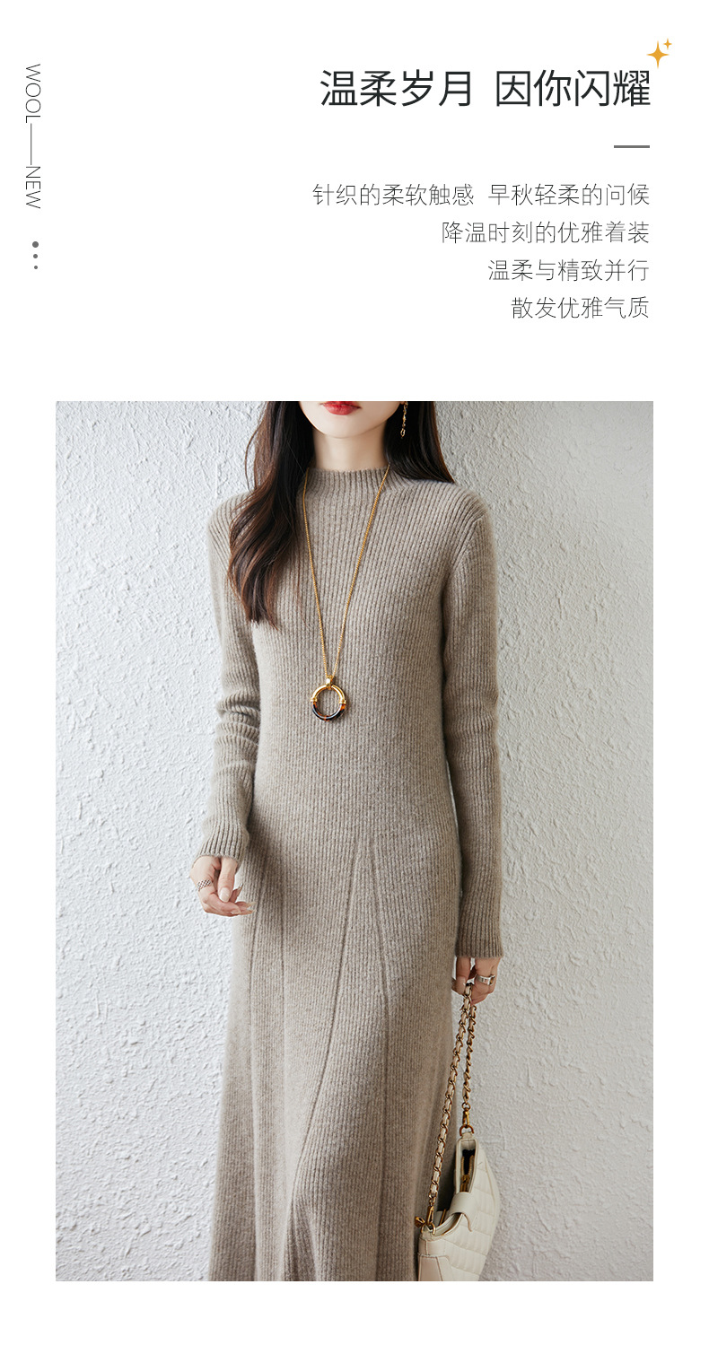 半高襟の純色のウールのワンピースの女性の2024秋冬のニットはやせて見えます。