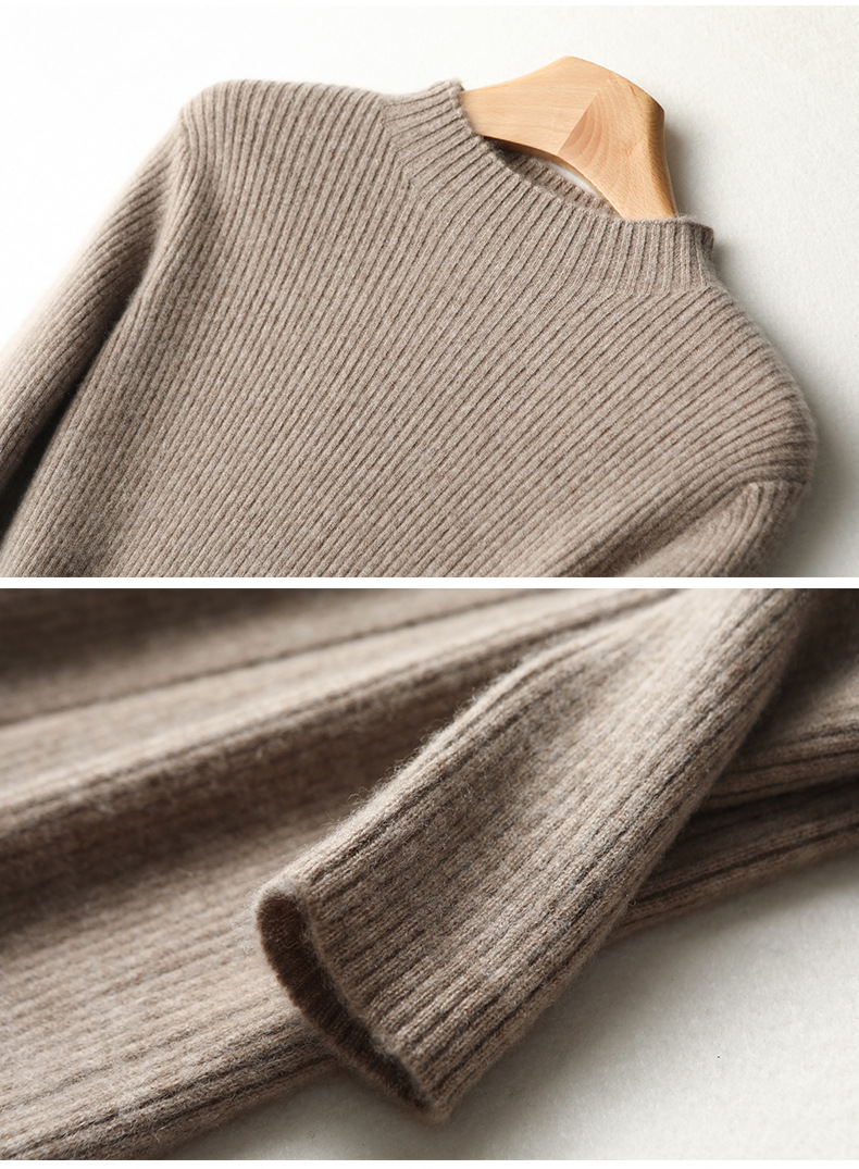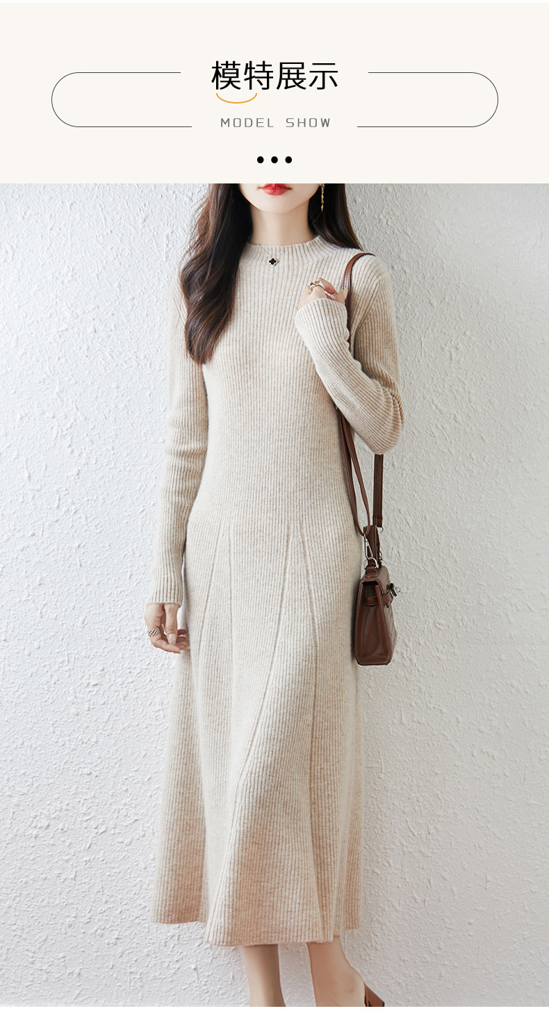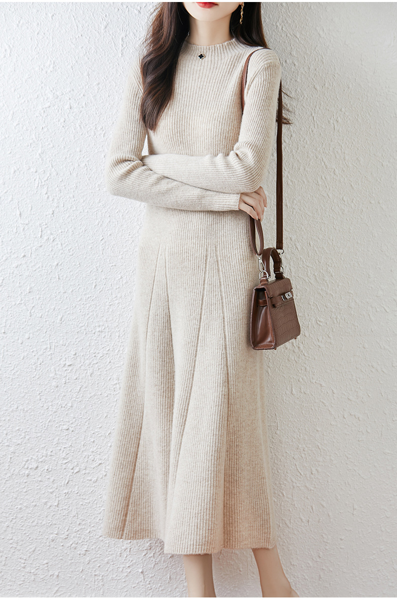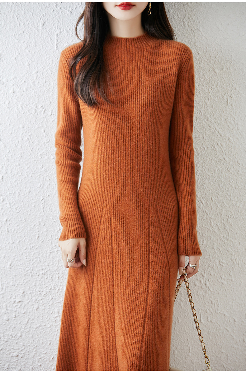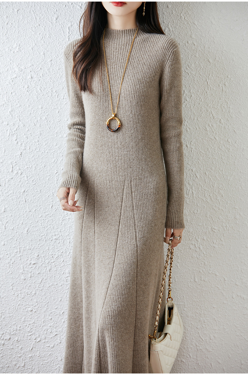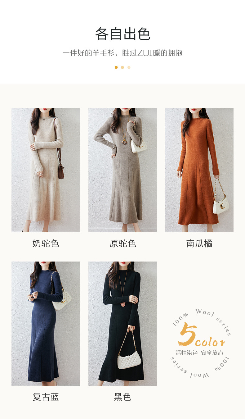 半高襟の純色のウールのワンピースの女性の2024秋冬のニットはやせて見えます。