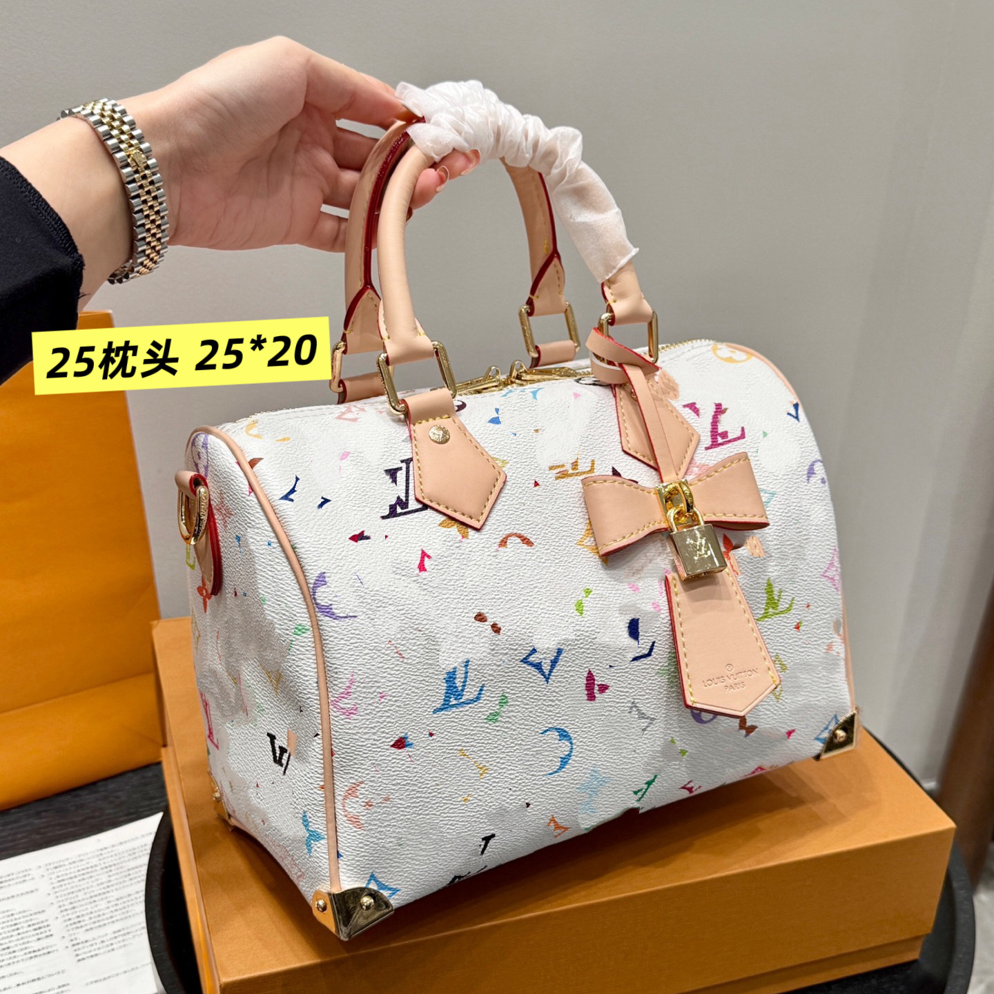 2025新款真皮白三彩系列单肩包斜跨包手提包法棍化妆包水桶包麻将