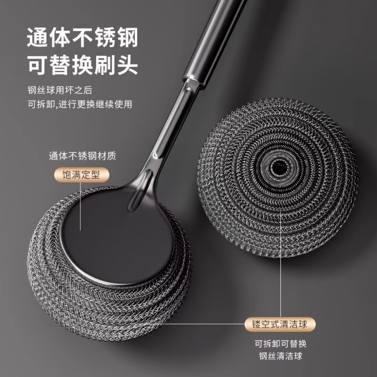 颜色 不锈钢长柄锅刷【一套】,单独钢丝球替换头