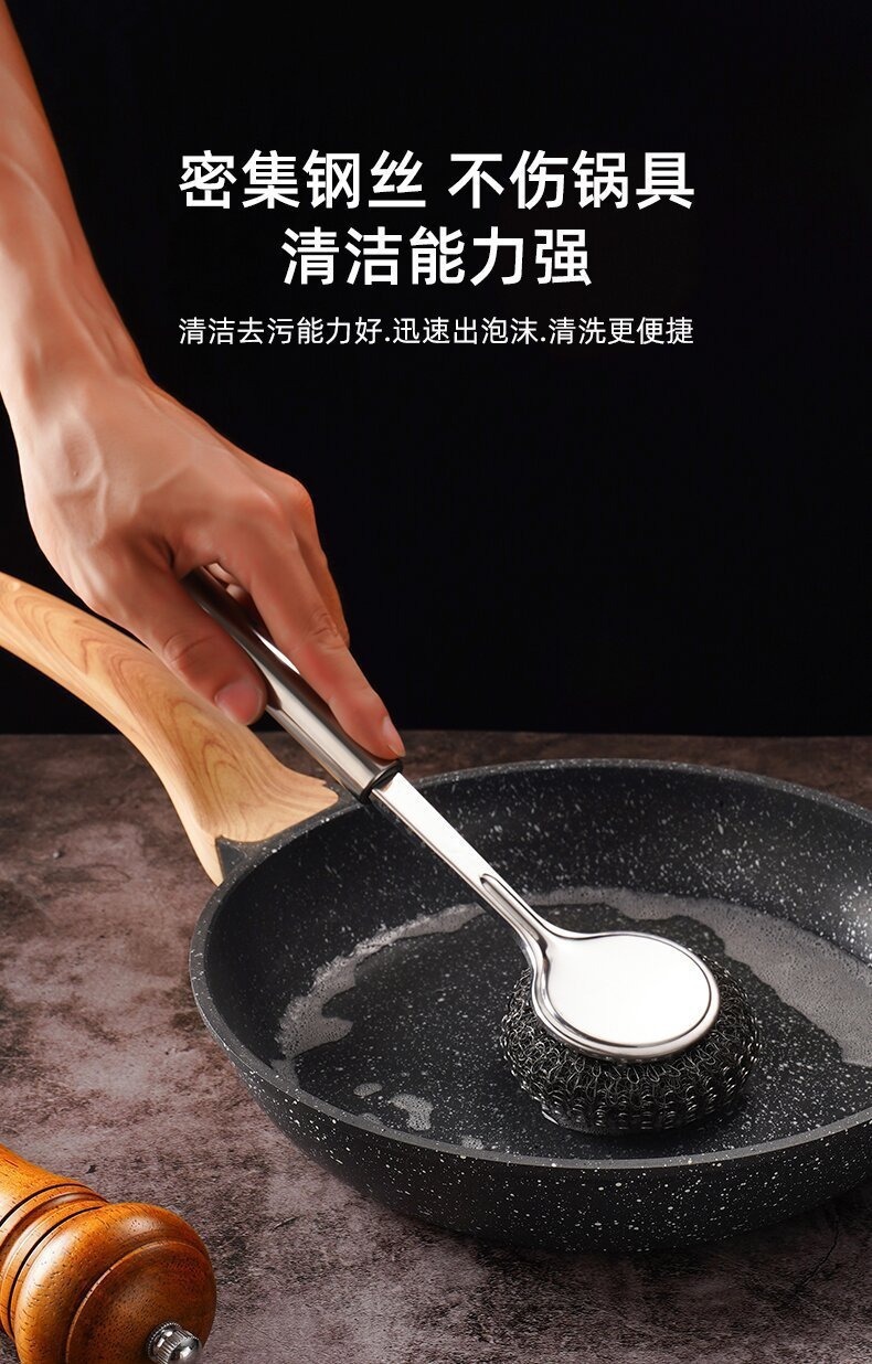 不锈钢锅刷长柄带钢丝球碗刷厨房专用不伤锅洗锅刷子不沾油污批发