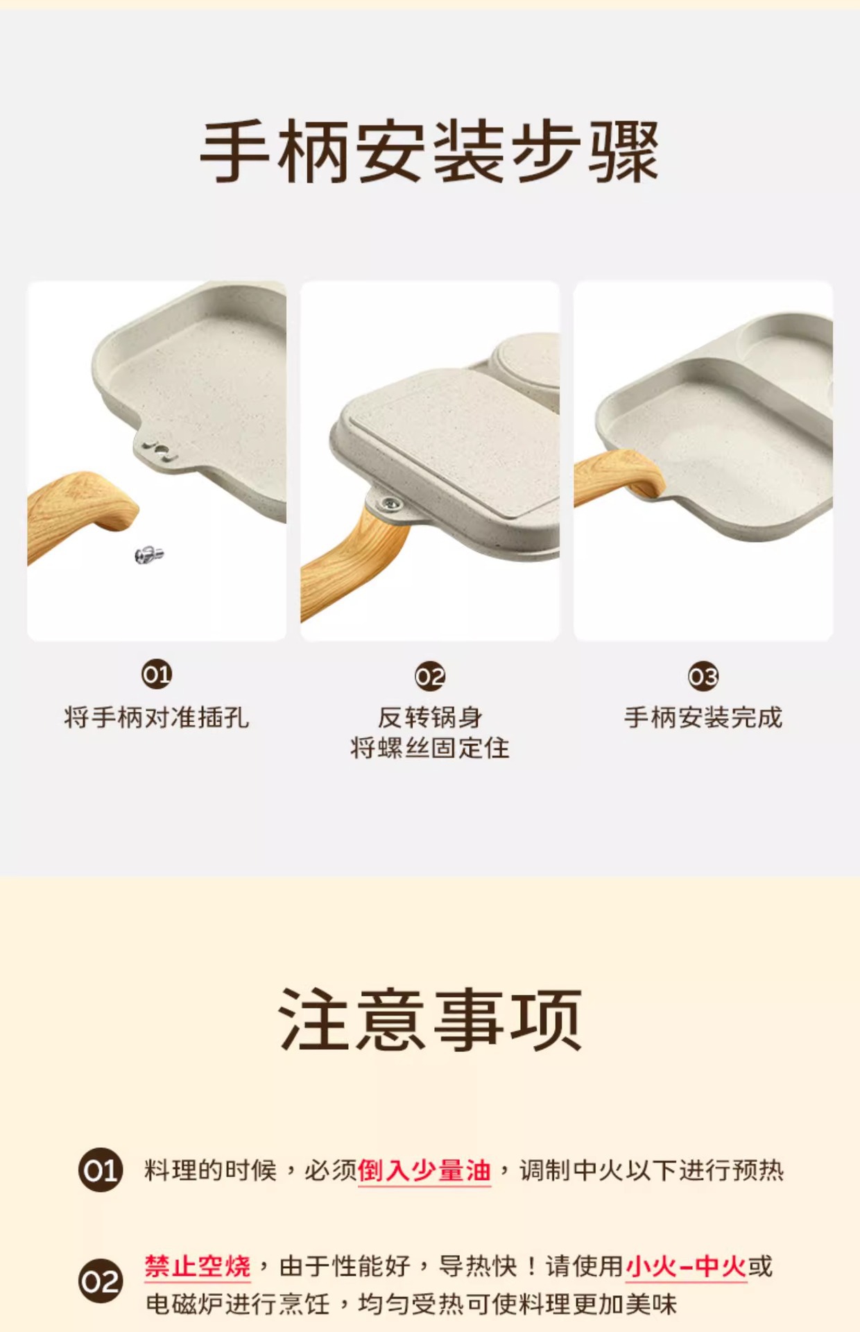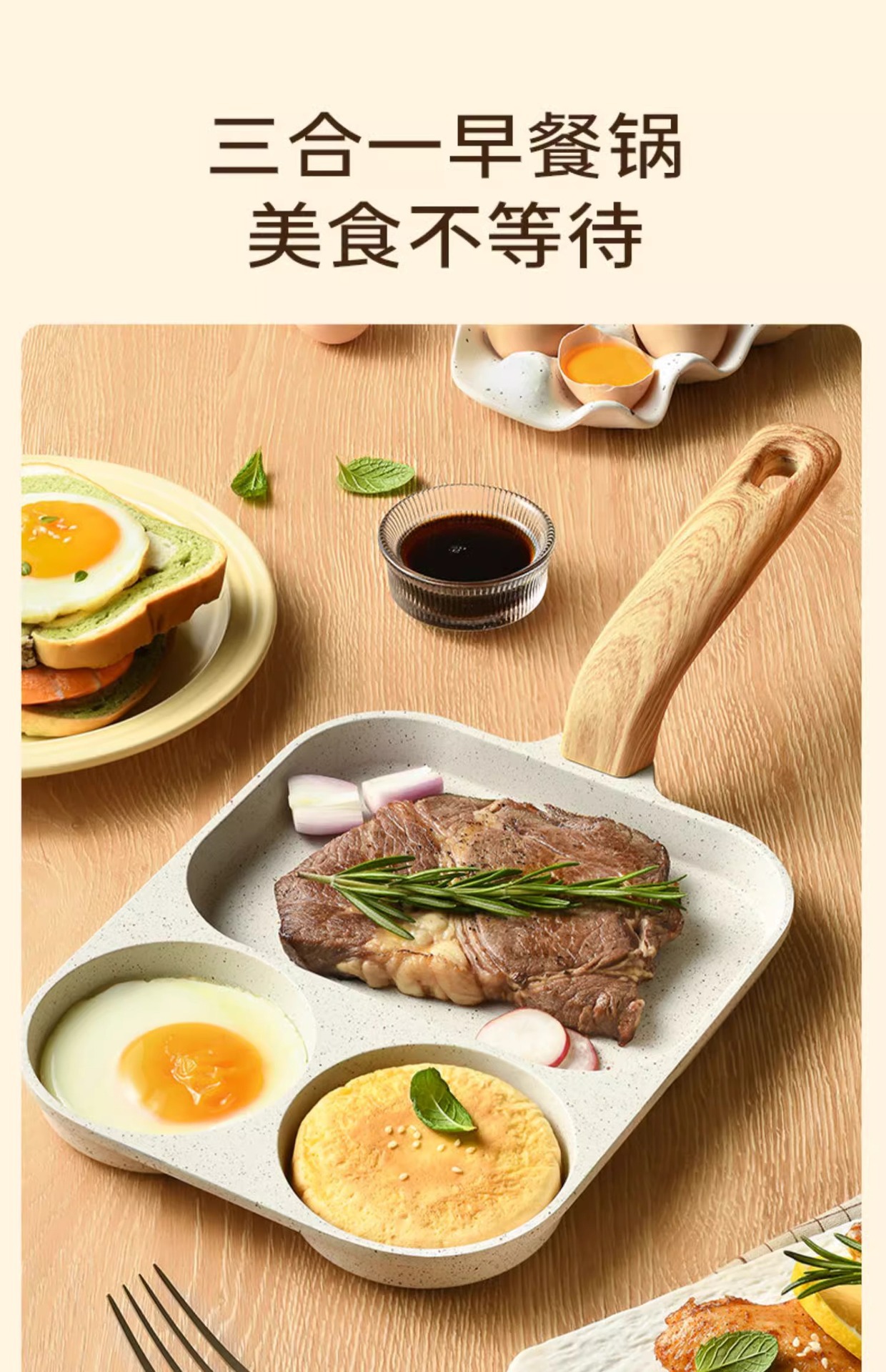 三合一早餐锅平底煎锅鸡蛋汉堡锅家用煎饼煎蛋不粘锅牛排煎锅
