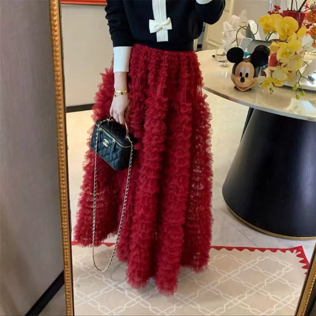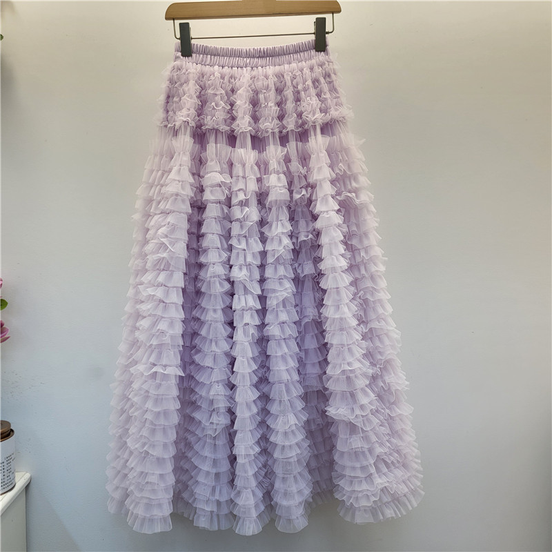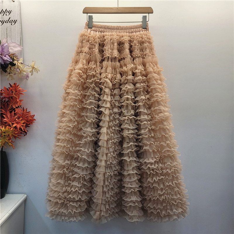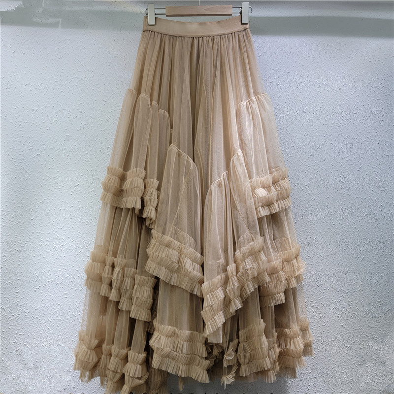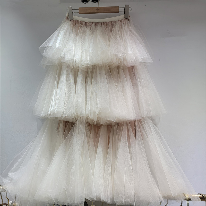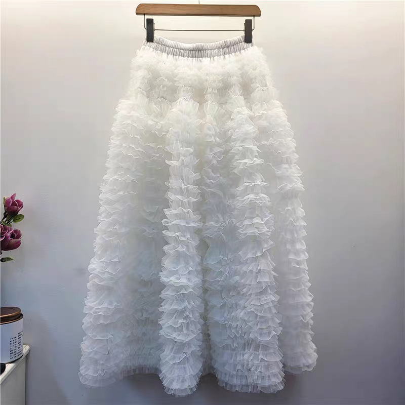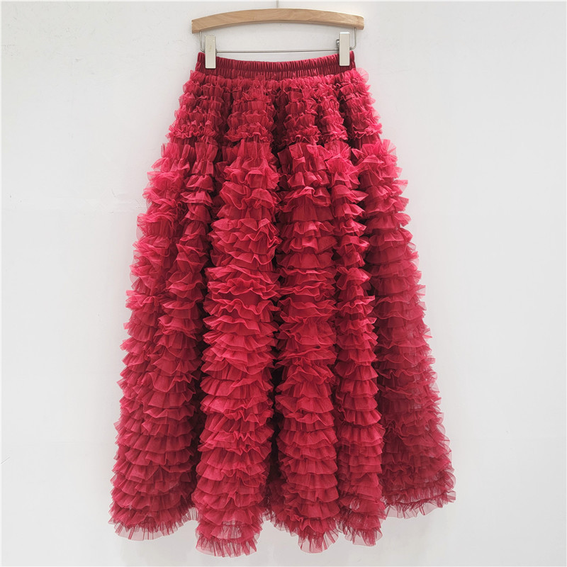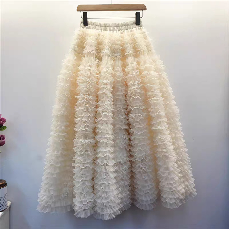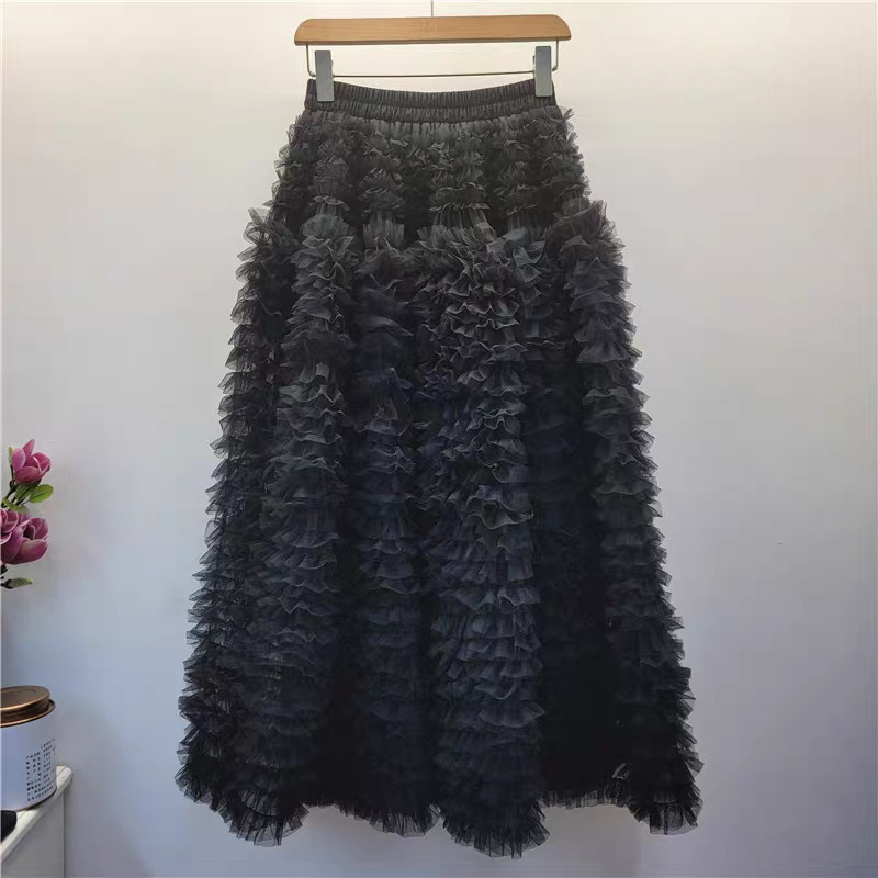 秋冬重工版蛋糕裙层次感多层褶皱网纱半身裙A字蓬蓬裙中长纱裙