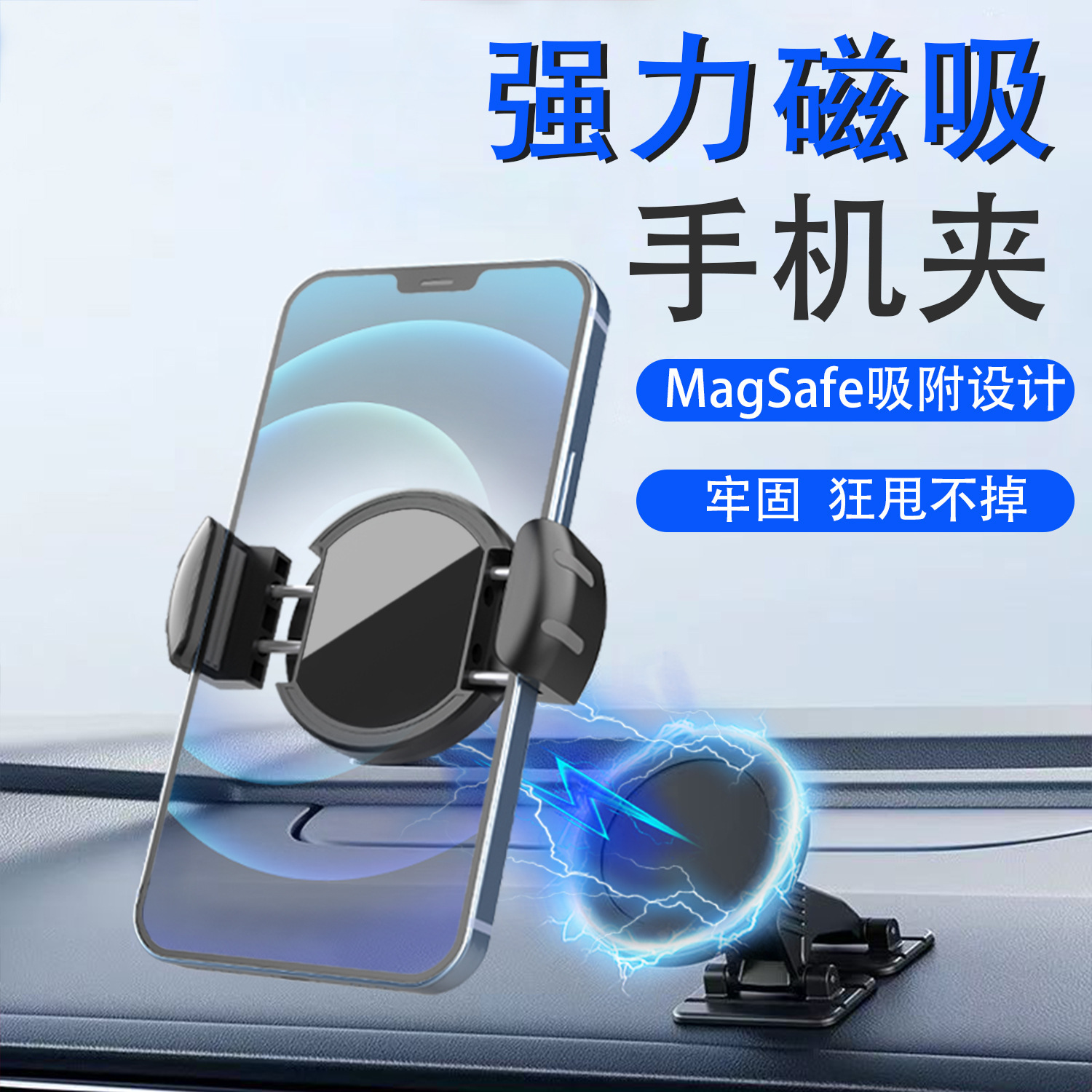 N54强磁+真空吸附车载支架 金属机身防滑汽车内用导航支架