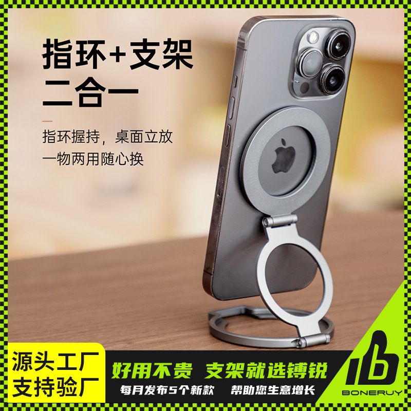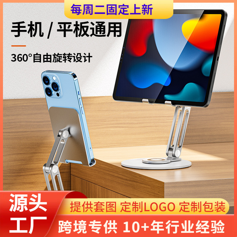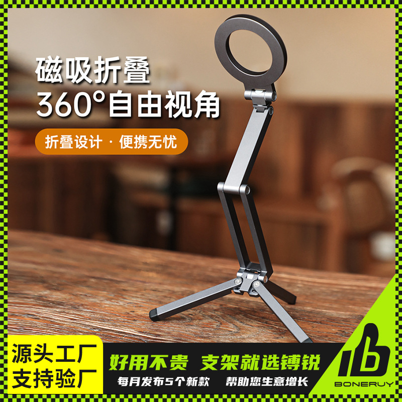 铝合金金属手机支架 磁吸散热可折叠 办公桌用横竖屏旋转支架