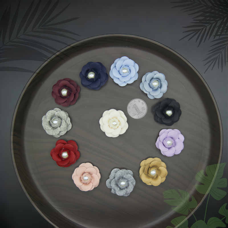 布艺珍珠山茶花服饰配件手工diy胸花发夹鞋帽包服装辅料定型花朵