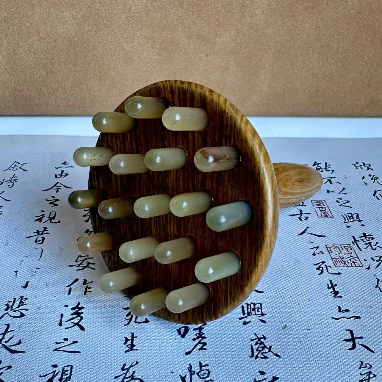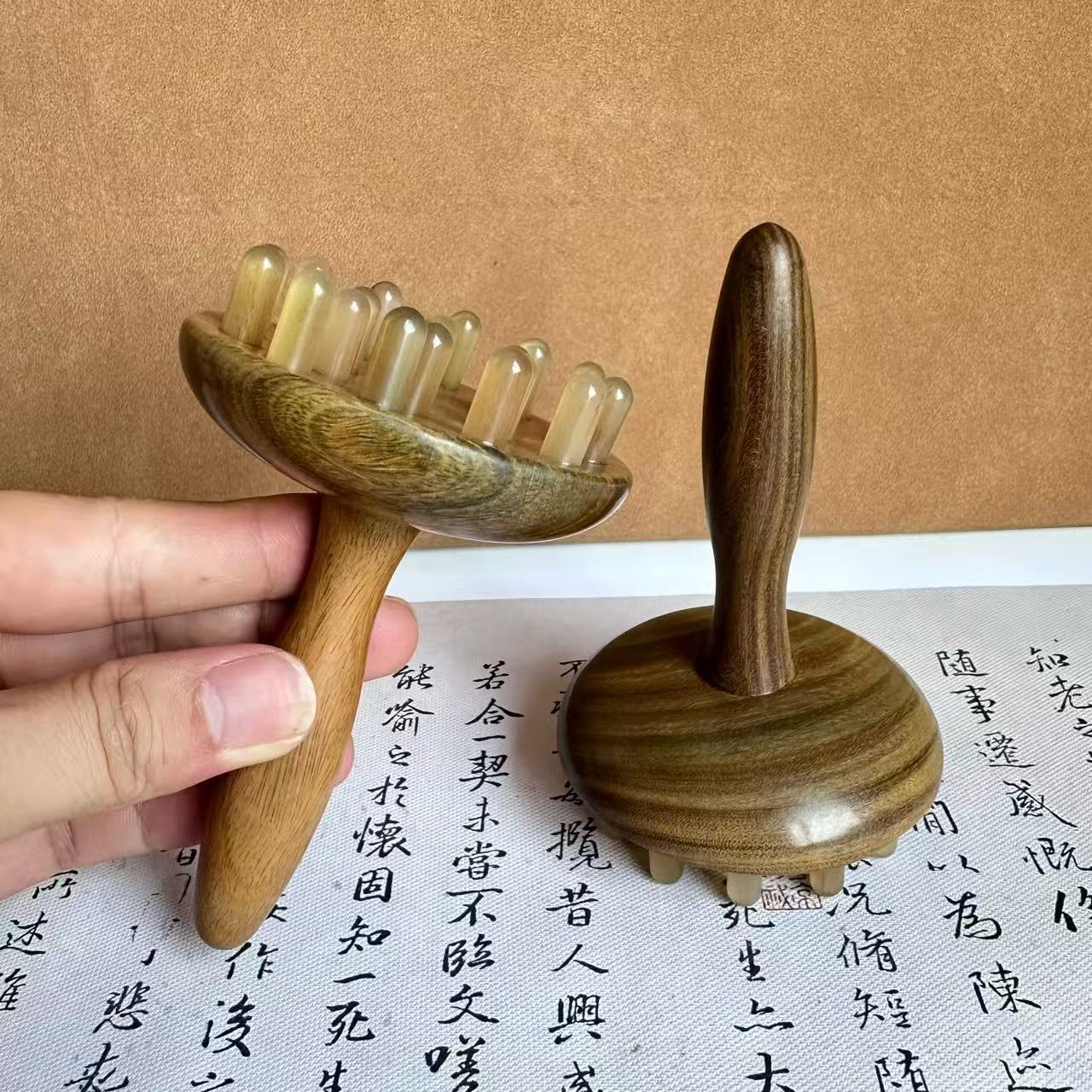 绿檀木羊角按摩梳子头皮疏通经络刷全身通用肩颈部腹部揉肚子刮痧